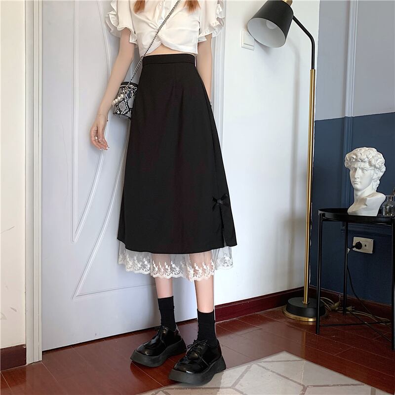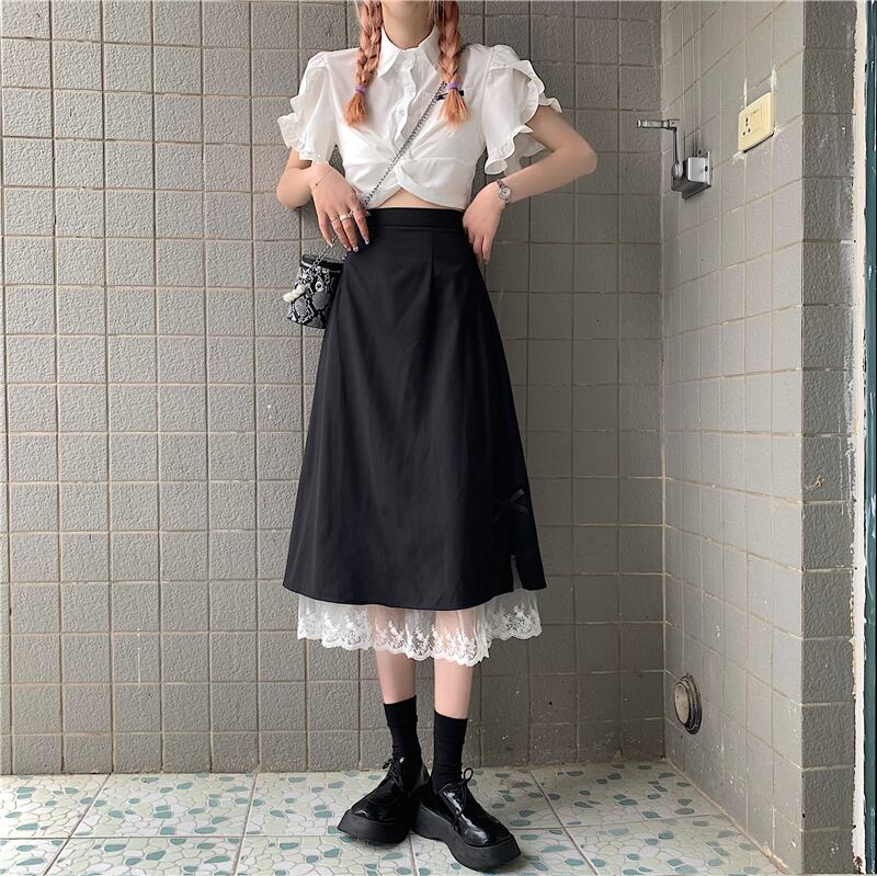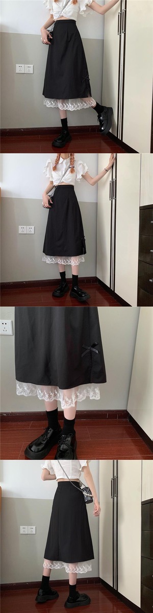 サマーハイウェストウェストAライン薄手レーススカート 夏物 ステッチ misskkl49123404449