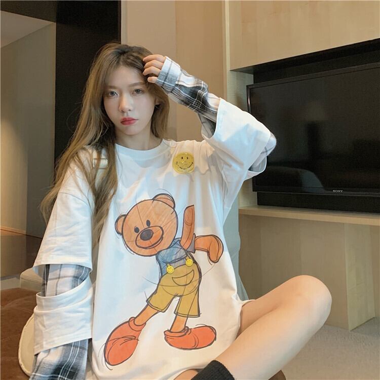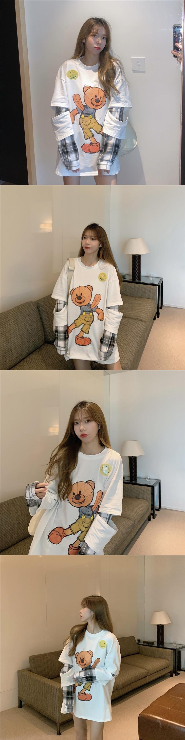 セーター 格子柄オータムルーズトップス ロング 秋物 ステッチ misskkl73918164377
