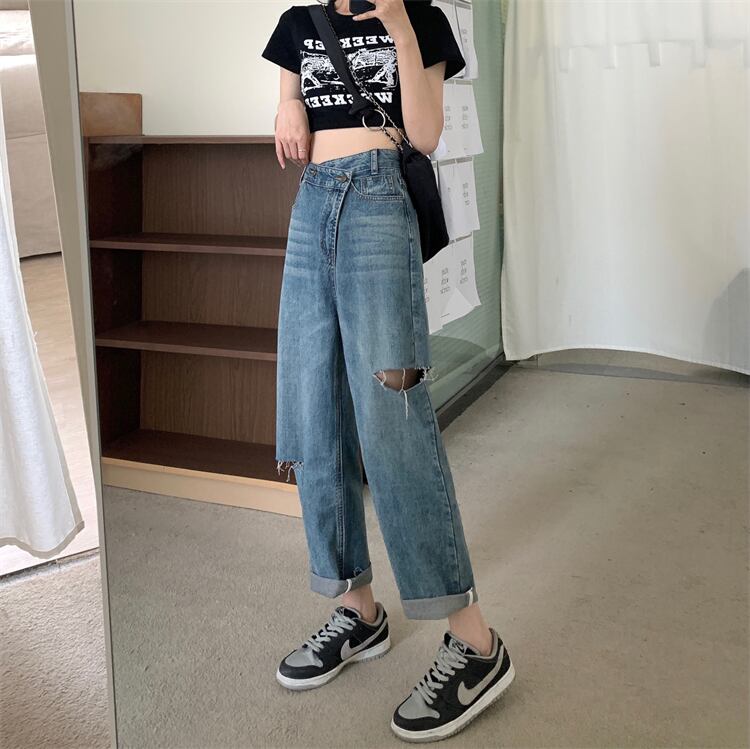 バックルジーンズ レディースサマーハイウェストウェストルーズパンツ 夏物 misskkl53343379209