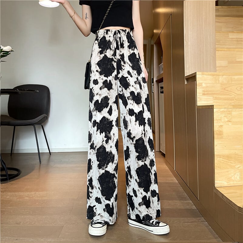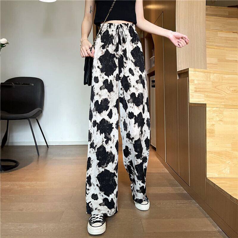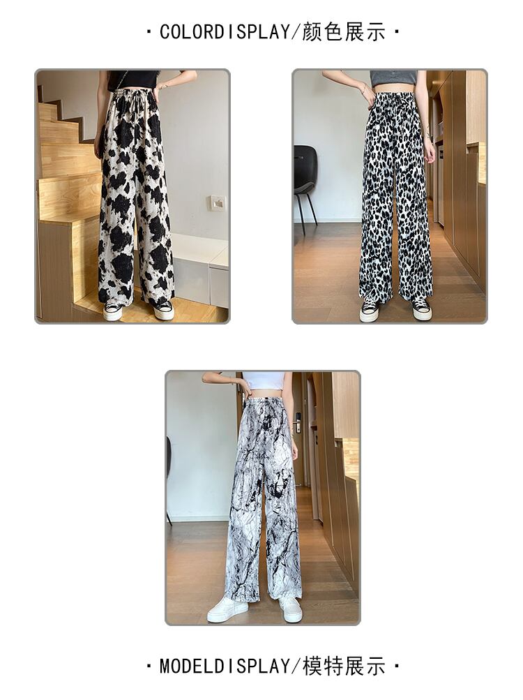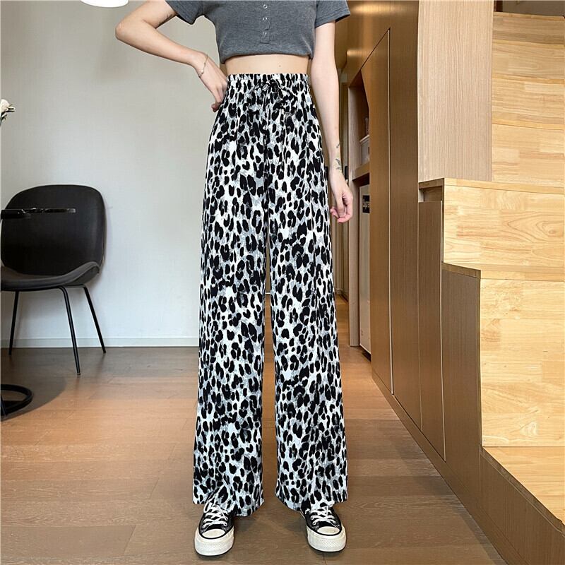 ワイドレッグパンツ サマー薄手レオパードプリント柄ハイウェストウェストルーズカジュアル ストリート 夏物 ワイドパンツ misskkl13167576646