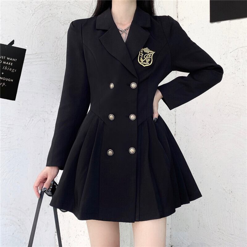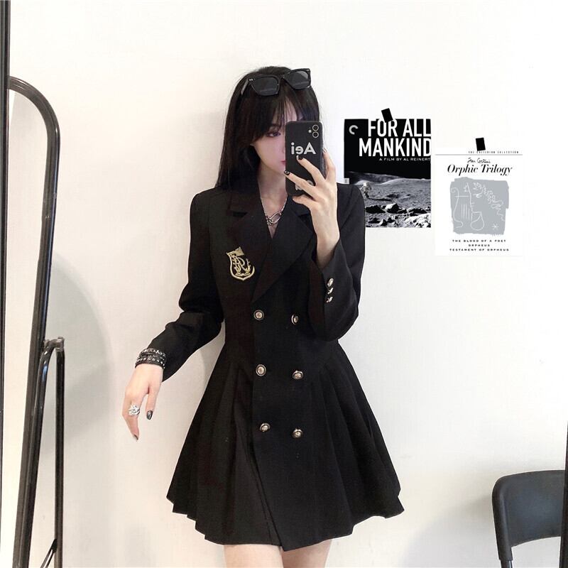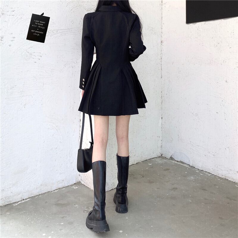 ドレス オータムスタイルダブルブレストウェストプリーツショートスカート レディース ロング 秋物 misskkl67242362026