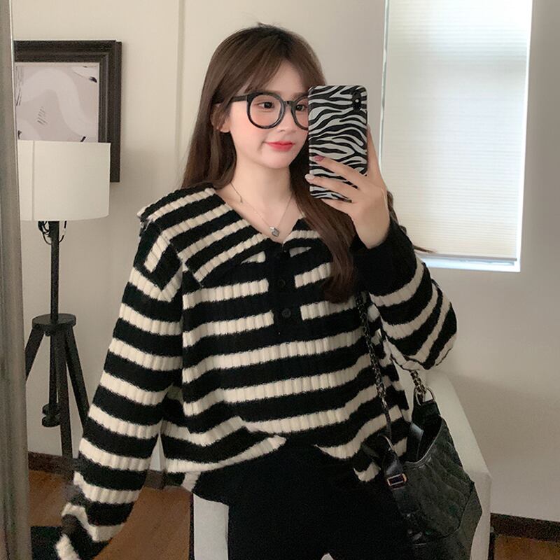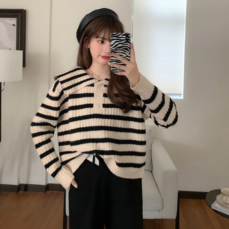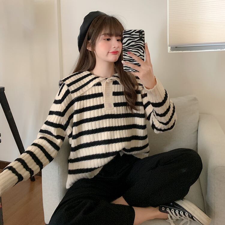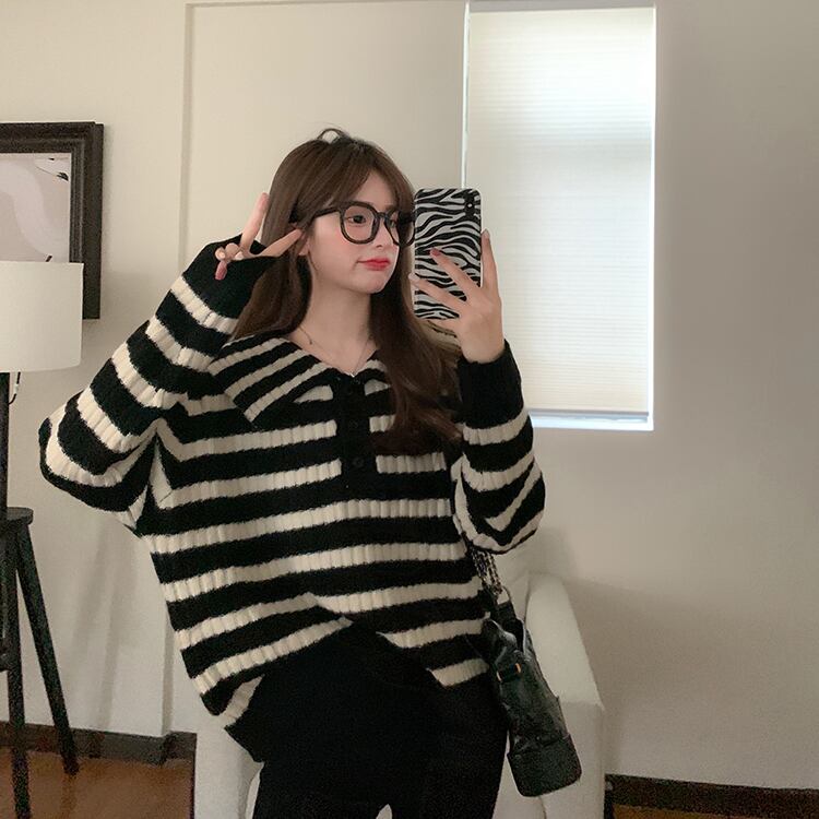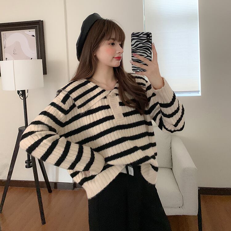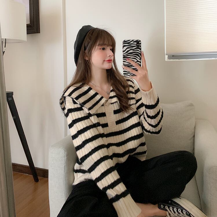 オータムルーズストライプスタイルニットセーター レディース ロング 秋物 misskkl68828075816