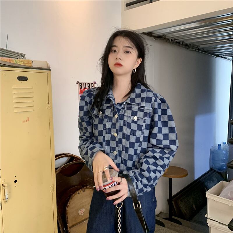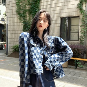 オータムスタンダードショート格子柄ルーズカジュアルジャケット ロング レトロ 秋物 misskkl27503572506