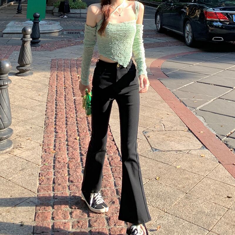 パンツ ブラックサマースタンダードハイウェストウェストレッド レトロ 夏物 misskkl41132746480
