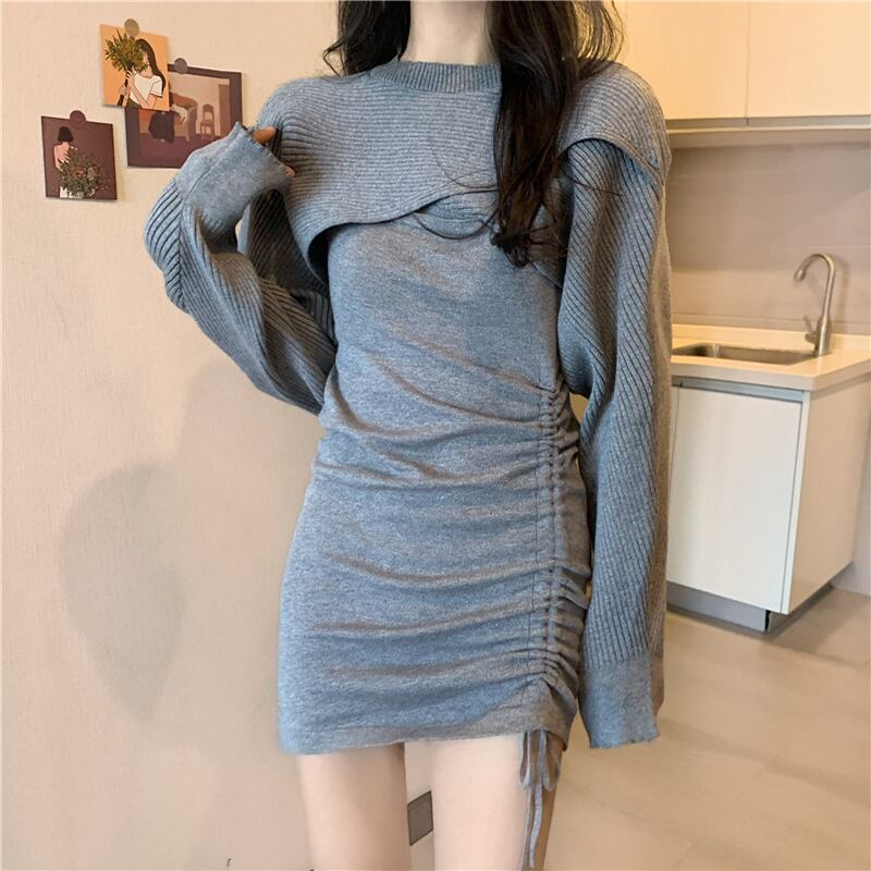 スプリングオータムスリムギャザーレースプリーツドレス レディース 春物 秋物 misskkl7333298638