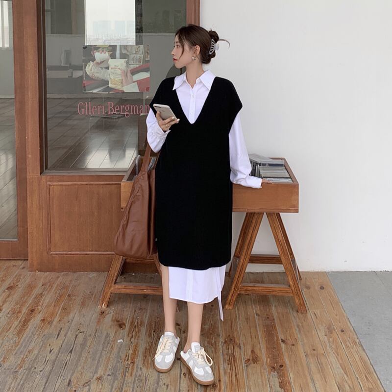 色:青いシャツスカート,白いシャツスカート,白いベスト,黒のベスト