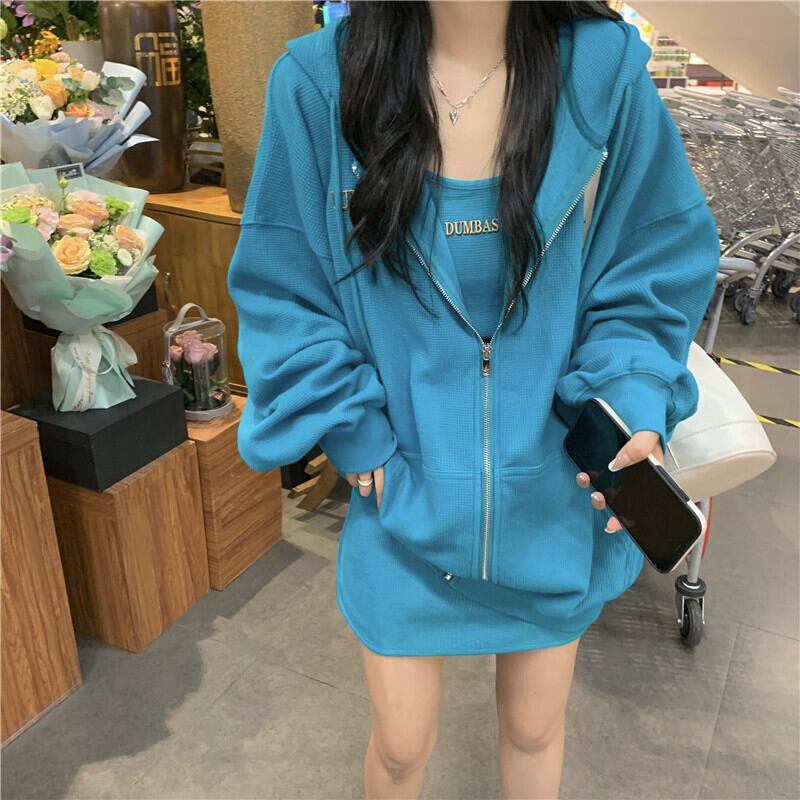フードセーター レディースオータムルーズ薄手ジッパーカジュアルジャケット ロング 秋物 misskkl97258333729