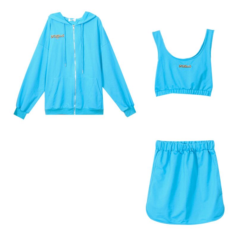 色:青いスカート,アプリコットスカート,アプリコットカーディガン,アプリコットスリング,ブルーカーディガン,青いスリング