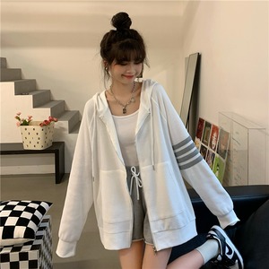 薄手フード長袖スリーブジャケット オータムルーズグレーセーター レディース ロング 秋物 ステッチ misskkl86508974765