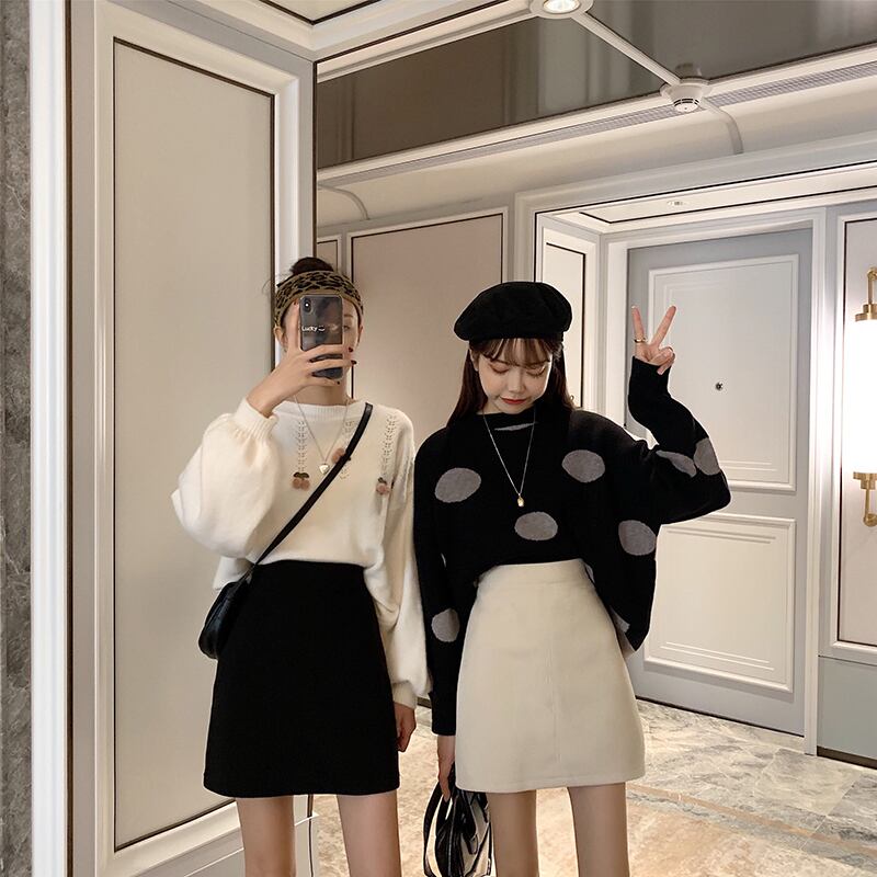 スプリングハイウェストウェストAラインスカート ソリッド カラー 春物 ソリッドカラー misskkl81670352832
