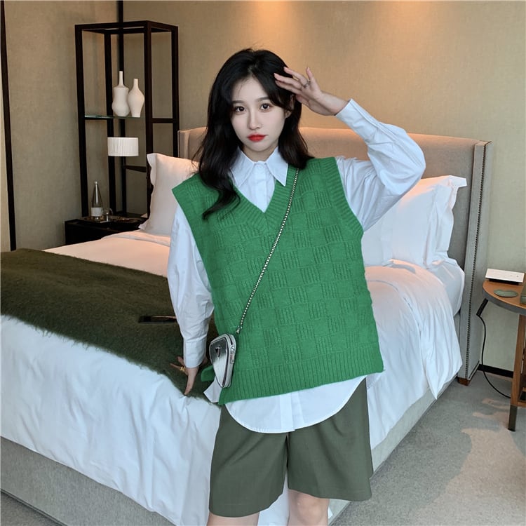色:グリーンベスト,白のシャツ,グレーのベスト,ブルーストライプシャツ