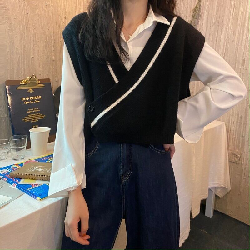 スプリングスタンダードクロスVネックルーズショートニットレディース レトロ 春物 misskkl42079161302