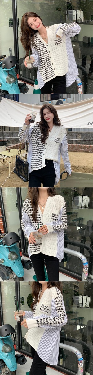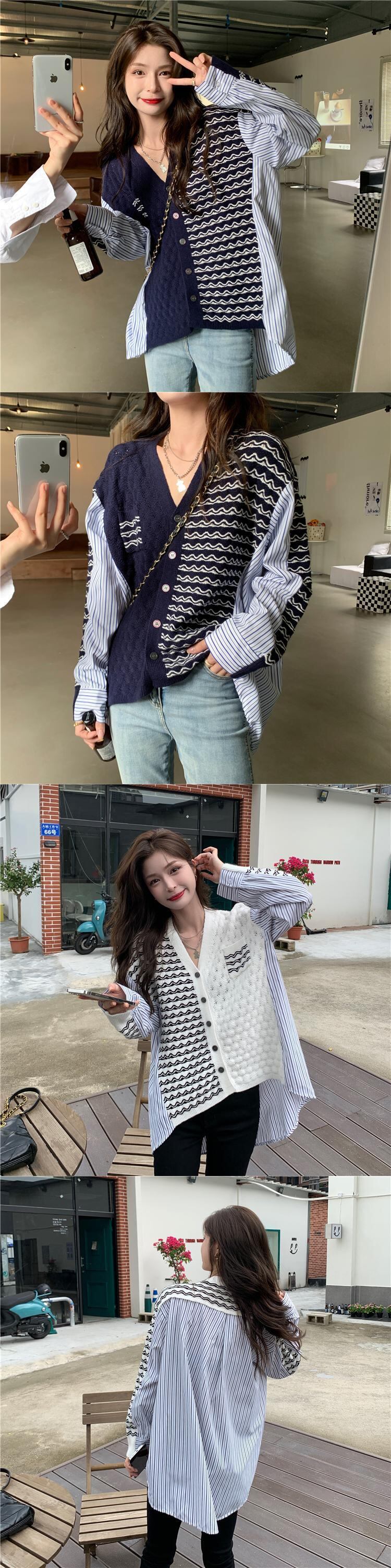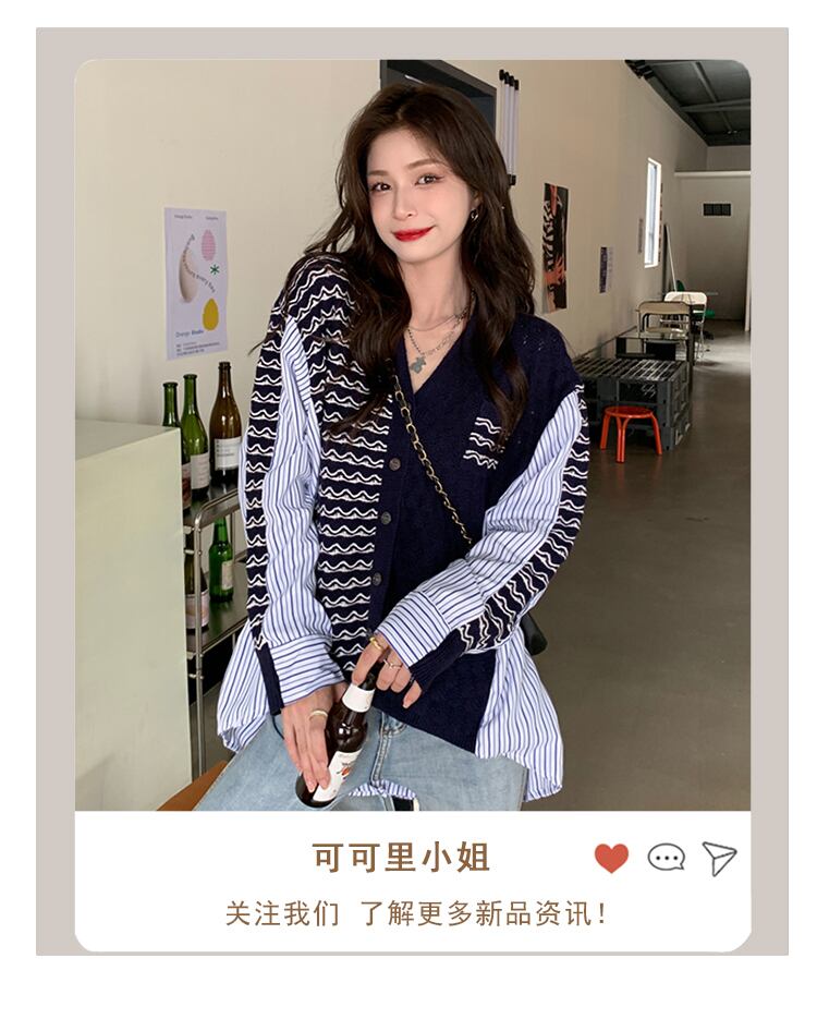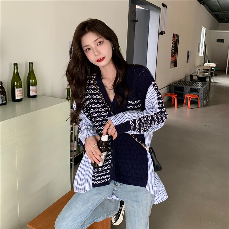 シャツ スタンダードスタイルオータムルーズVネックブラウス ストライプジャケット レトロ 秋物 ステッチ misskkl21710567650