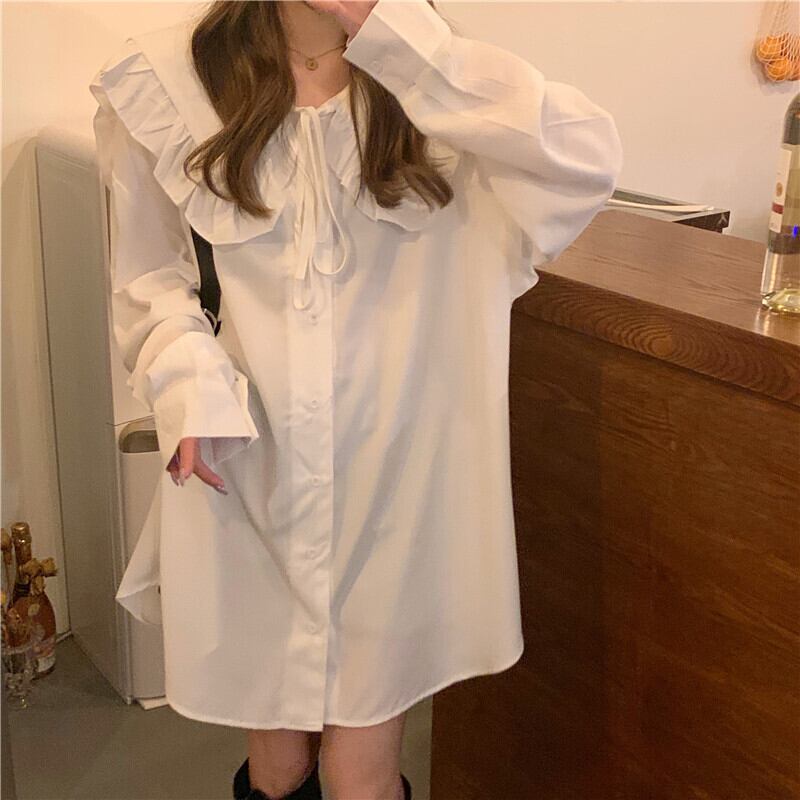 スプリングオータムルーズカラーシャツ ブラウス レディース ロング 大人ガーリー スウィート キュート カジュアル 春物 秋物 misskkl73762046844