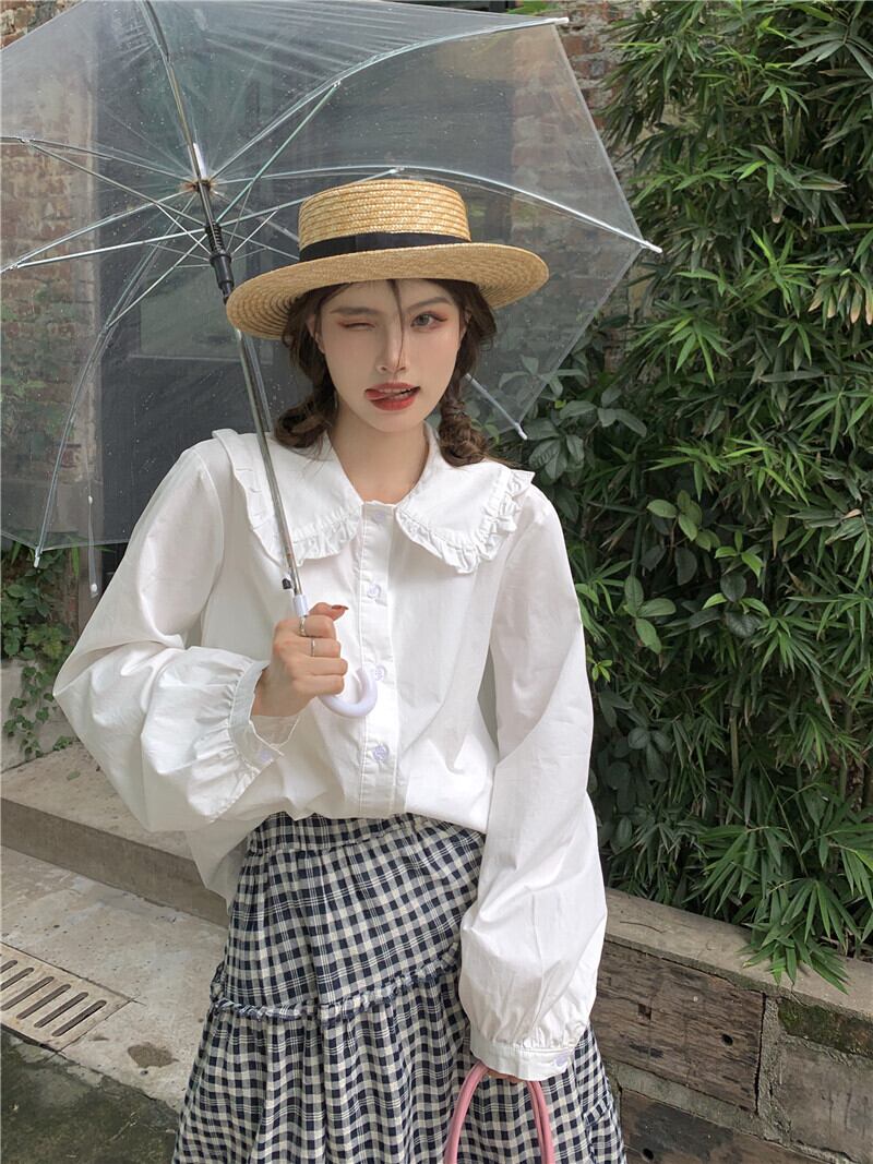 カラーシャツ スタイルオータム薄手ホワイト ロング 秋物 misskkl86591824977