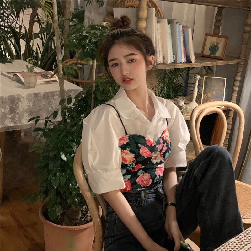 色:パフスリーブシャツ,フローラルベスト