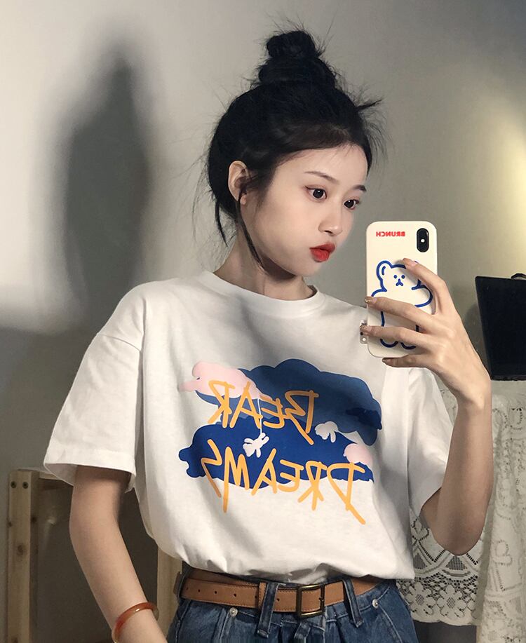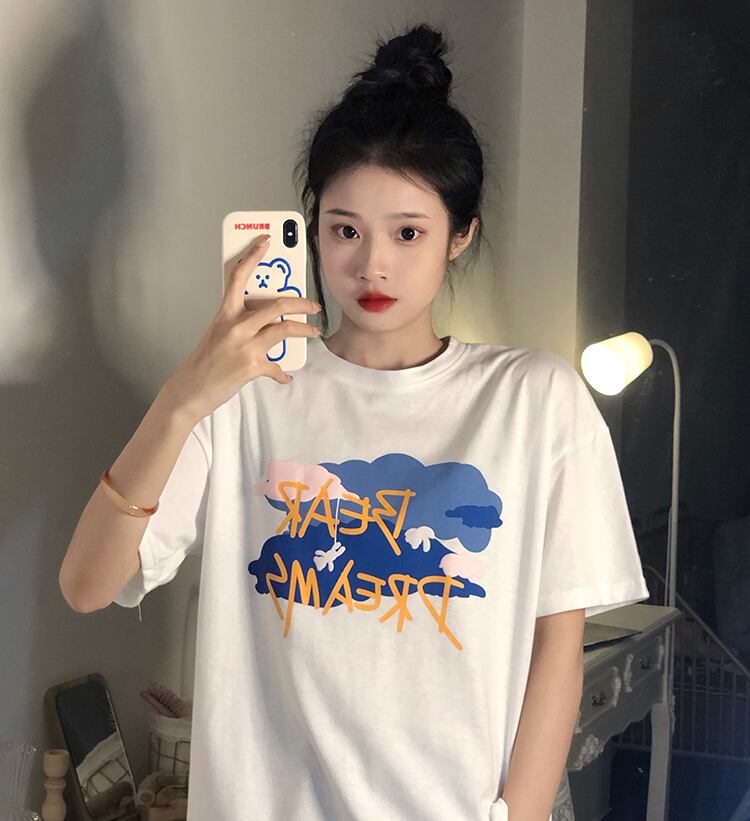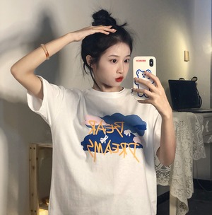 サマープリント柄ルーズホワイトTシャツ トップス レディース 夏物 misskkl58177558131
