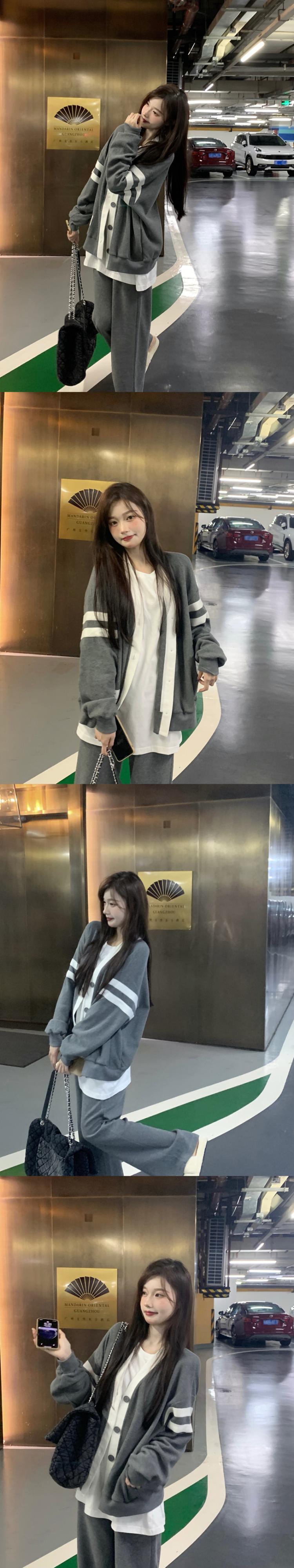 色:カーキカーディガン,カーキトラックパンツ,グレーのカーディガン,グレートラックパンツ