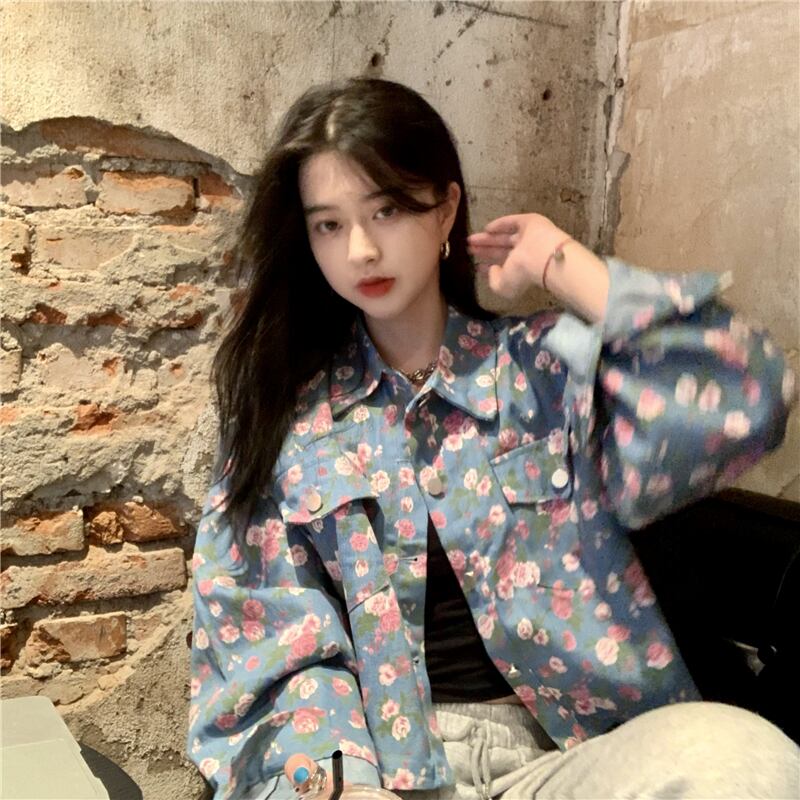 ジャケット スタンダードフローラルショートオータムルーズトップス ロング レトロ 大人ガーリー スウィート キュート カジュアル 秋物 花柄 misskkl14354714078