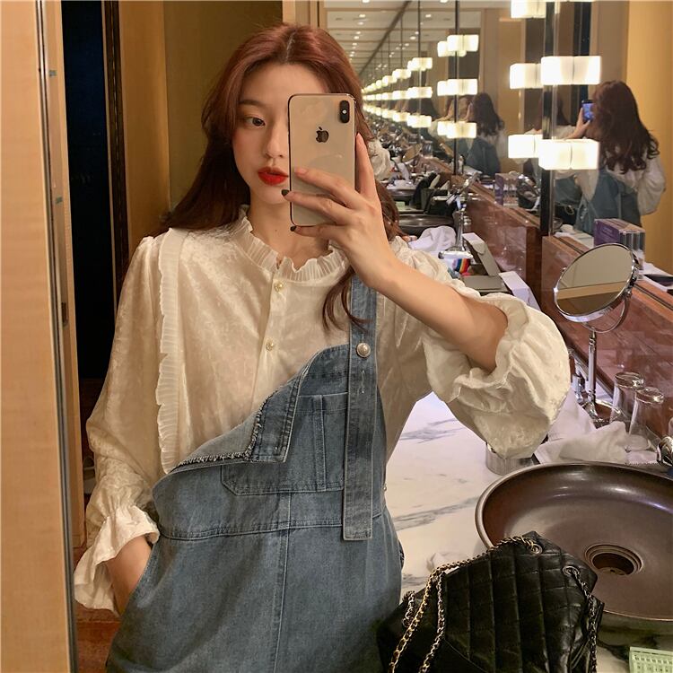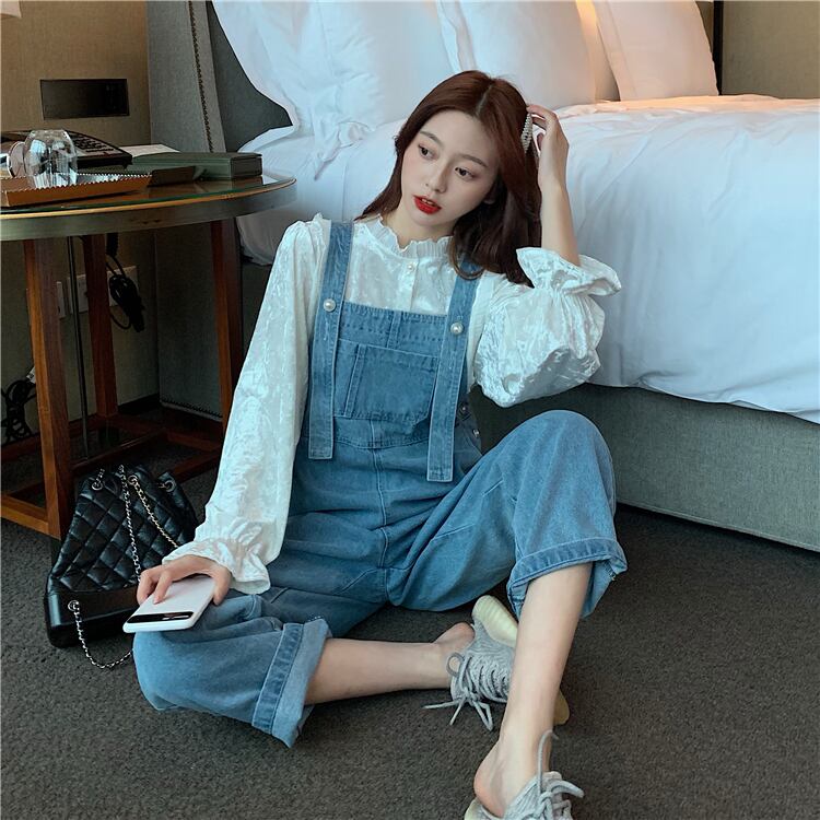 色:白のシャツ,青いオーバーオール