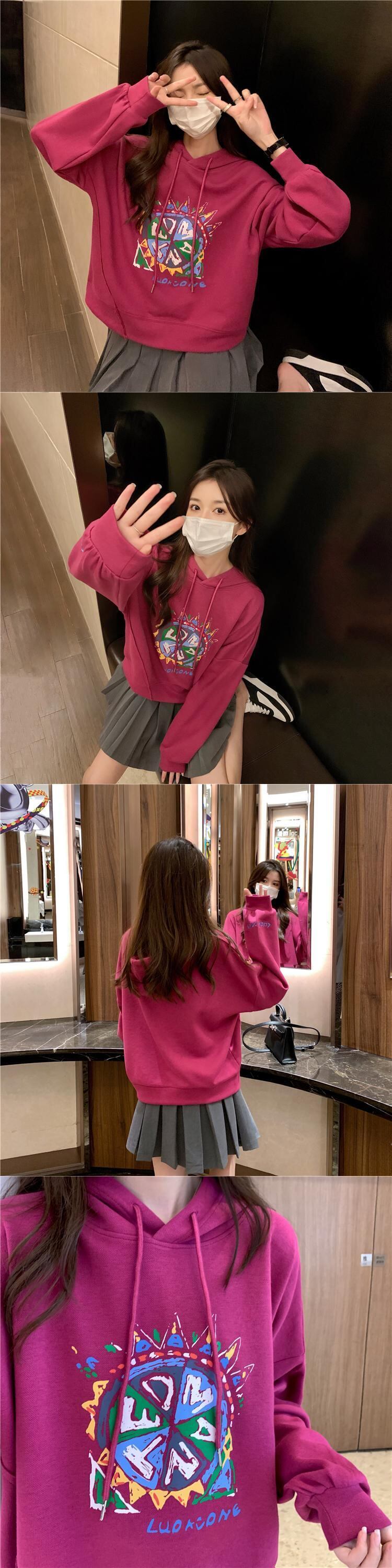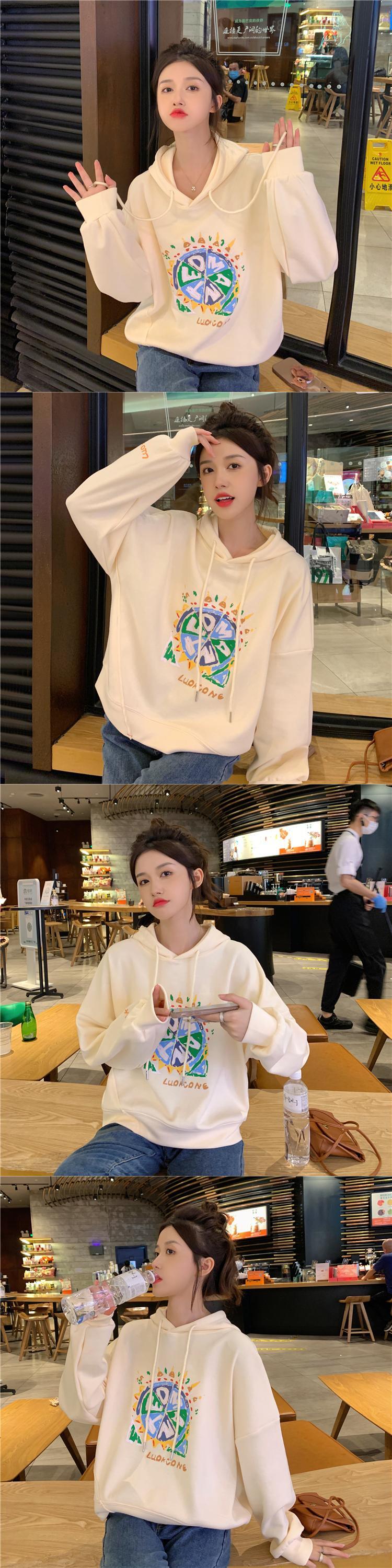 フードセーター レディースオータムスタイルプリントルーズトップス ロング 秋物 misskkl43210048908