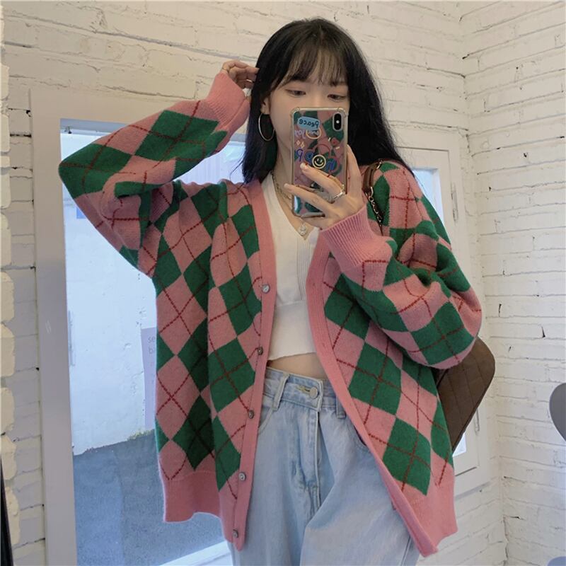 ニットセーター コート 格子柄スタンダードオータムトップス レトロ 大人ガーリー スウィート キュート カジュアル 秋物 misskkl87700393744