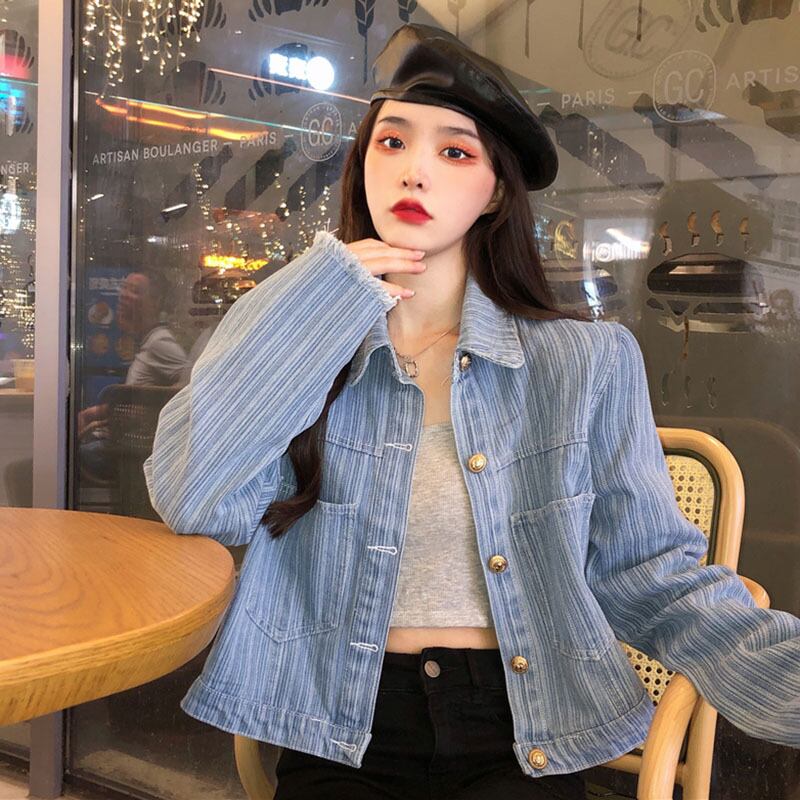 ショートジャケット オータムスタンダードスタイルストライプ薄手トップス ロング レトロ 秋物 misskkl83614365154