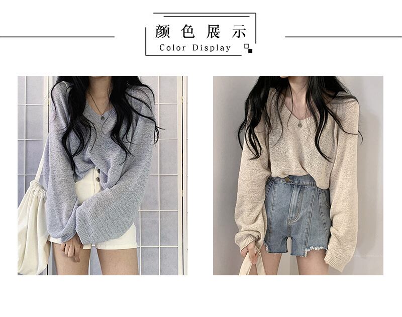 スプリングスタイルルーズVネック薄手セーター トップス ロング 春物 misskkl62168717326