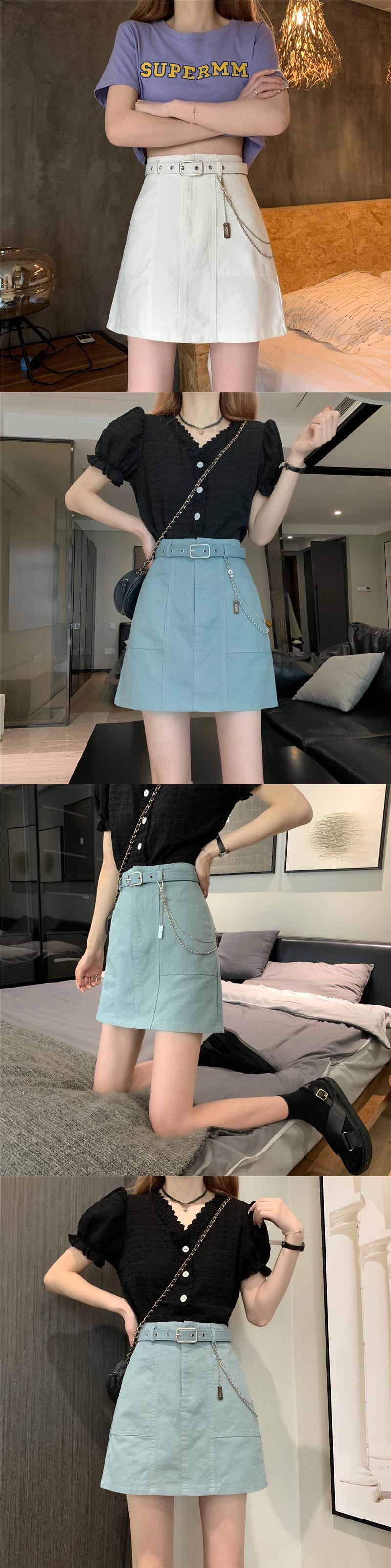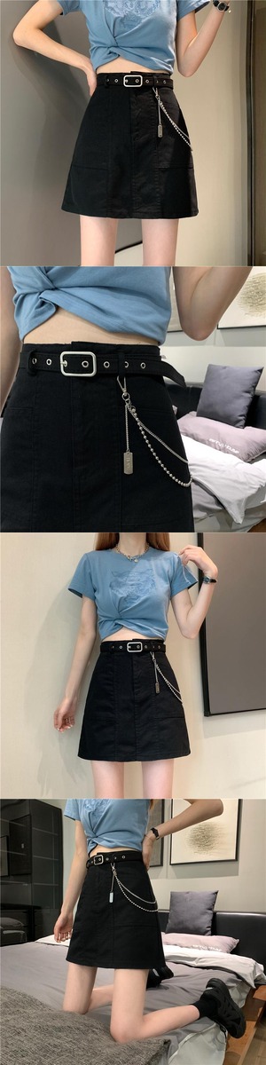 スカート サマーチェーン ハイウェストウェストAラインショートブラック 夏物 misskkl73753315672