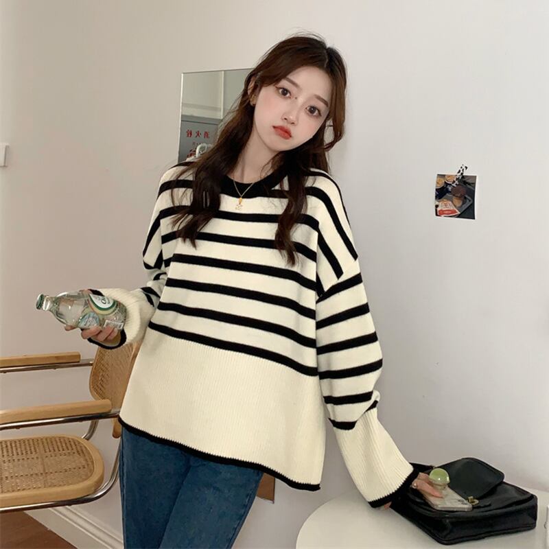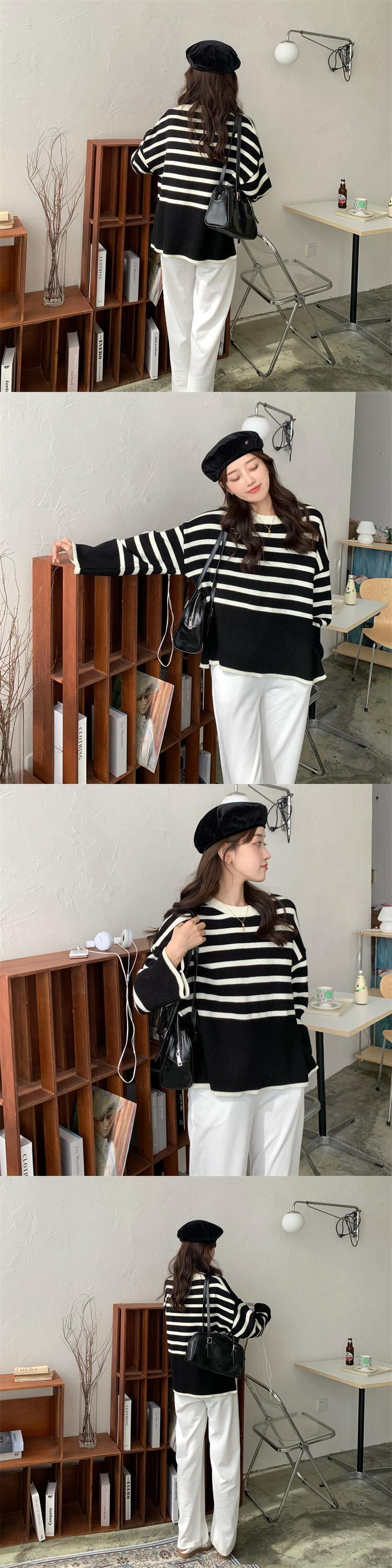 ストライプセーター スプリングオータムルーズサイドスリットコート ロング 春物 秋物 misskkl12300452822
