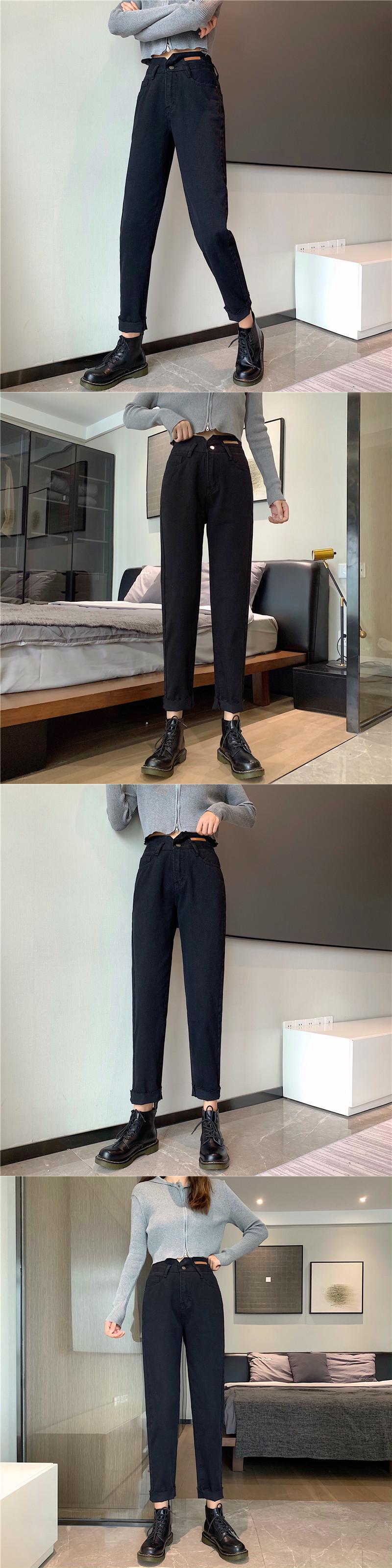 ジーンズ レディーススプリングオータムパンツ ブラックハイウェストウェストワイドレッグ ストリート 春物 秋物 ワイドパンツ misskkl39235488999