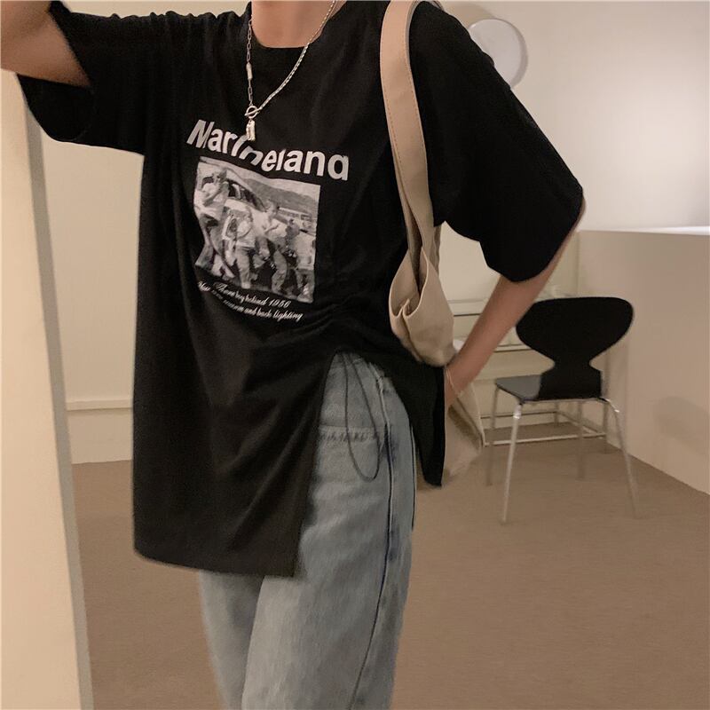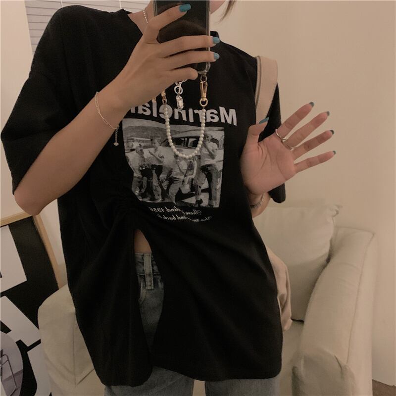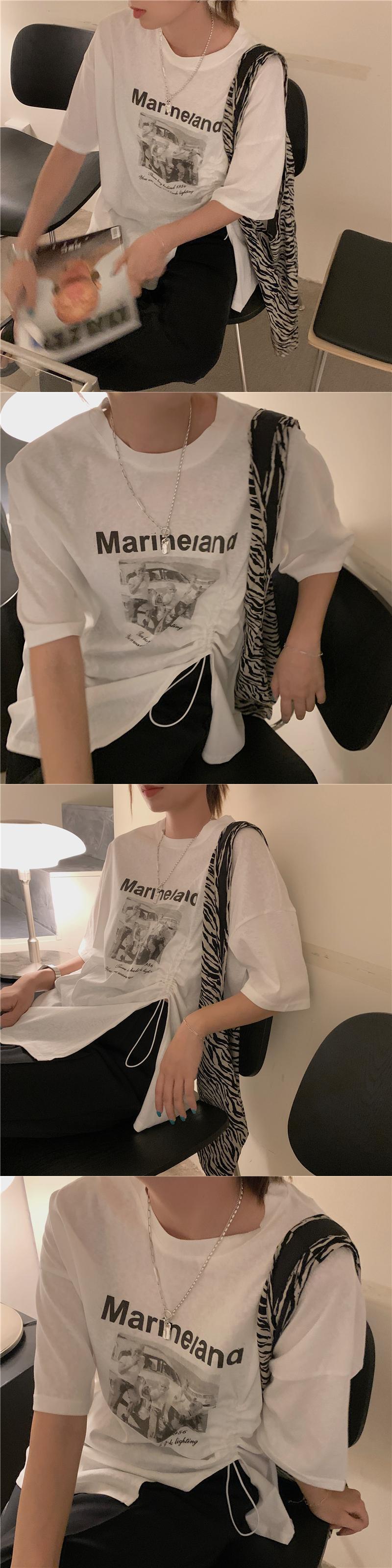 スタンダードプリントTシャツ ギャザーサマールーズトップス レトロ 夏物 misskkl13989757888
