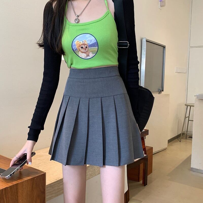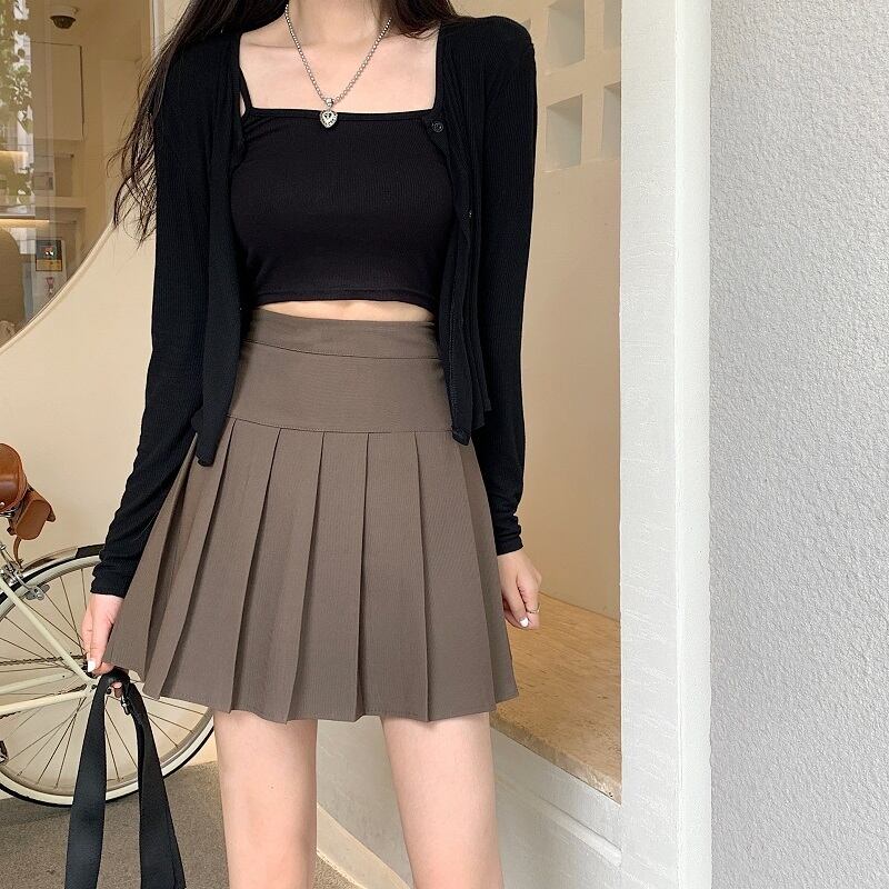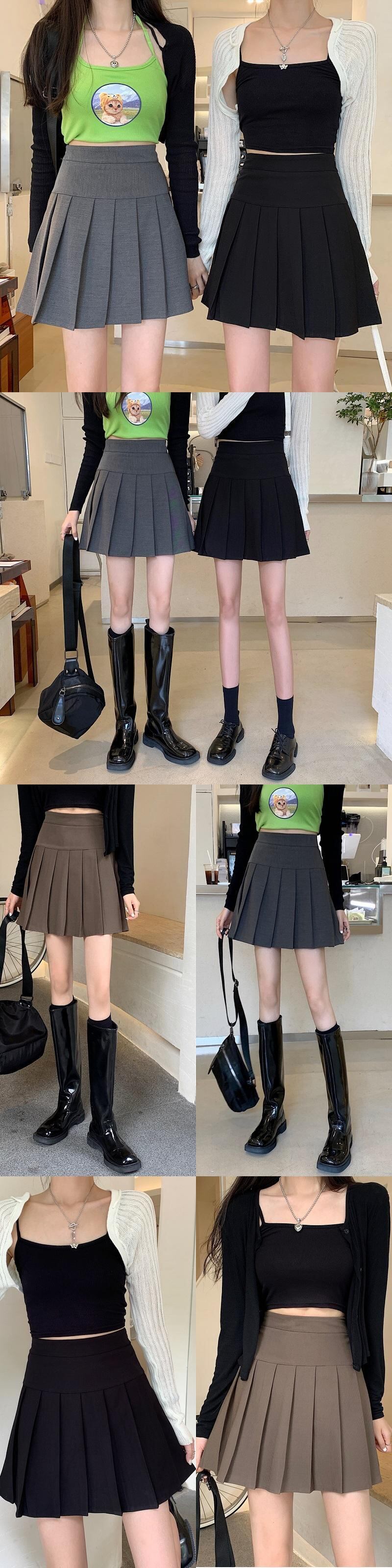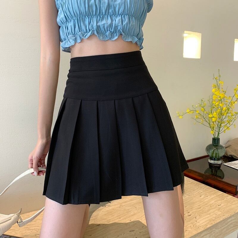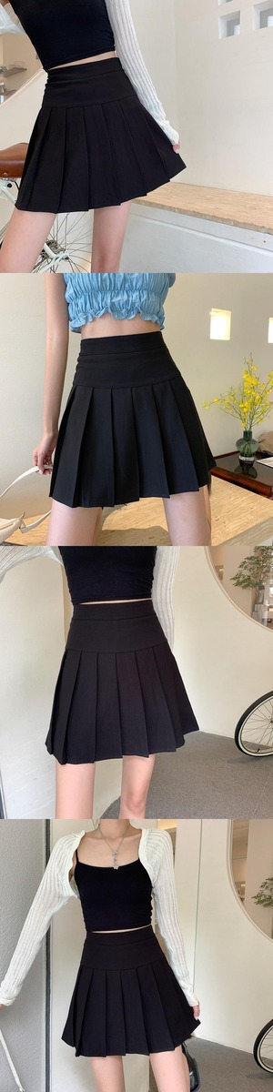 オータムスカート ハイウェストウェストスタイルブラックプリーツ 秋物 misskkl4189760570