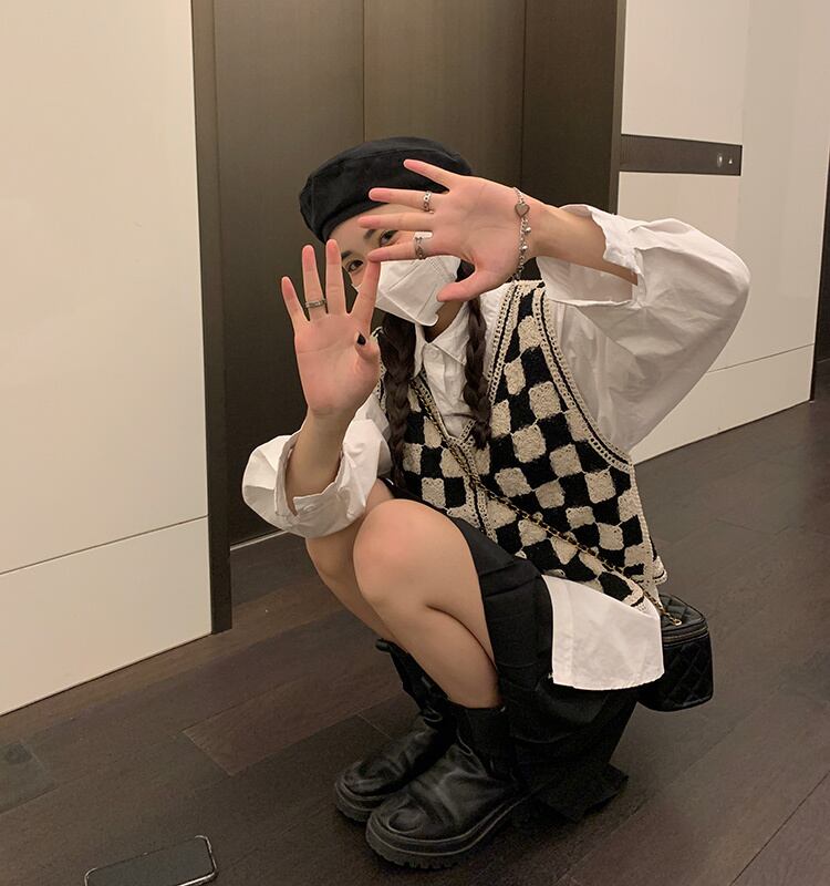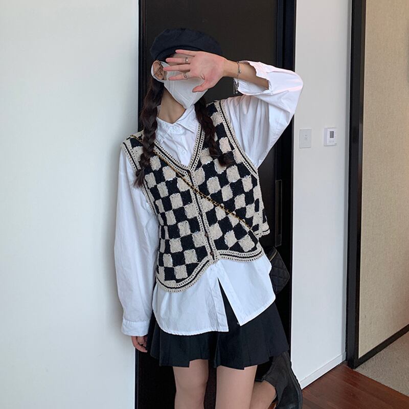 ブラックホワイトショートオータムスタンダードVネックジャケット スタイル レトロ 秋物 misskkl17008491628