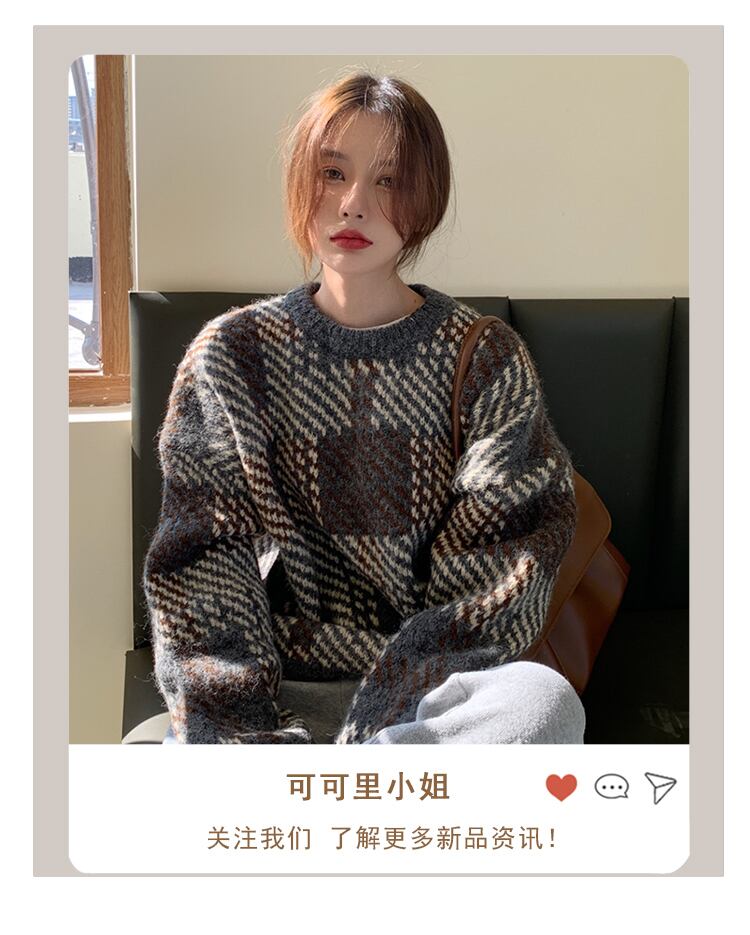 オータムカラールーズ格子柄セーター 秋物 misskkl90740397284