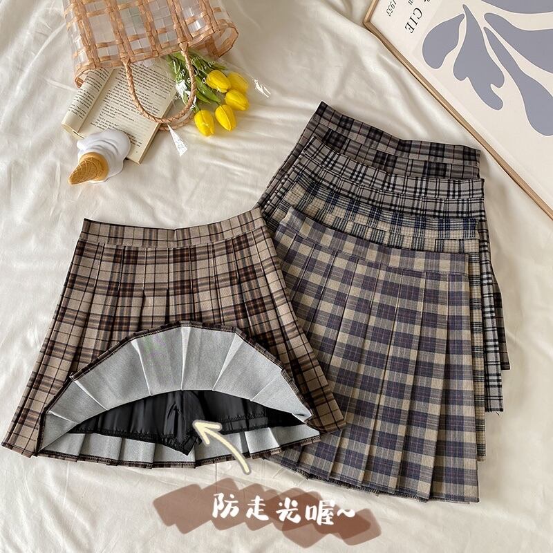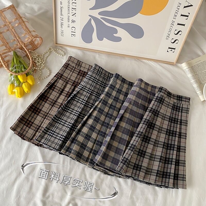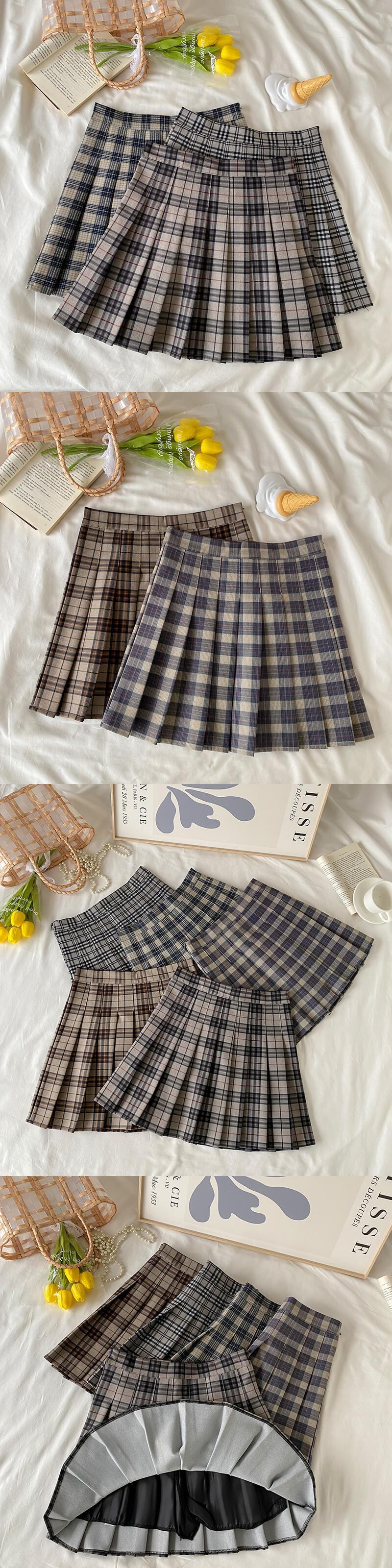ショートスカート オータムスタイルハイウェストウェスト格子柄プリーツAライン 秋物 misskkl6158020305