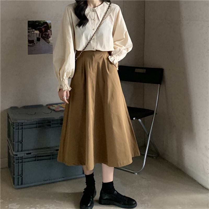 色:アプリコットシャツ,黒スカート,カーキ色のスカート