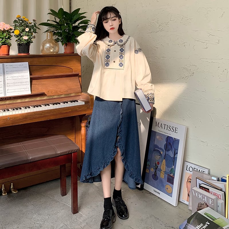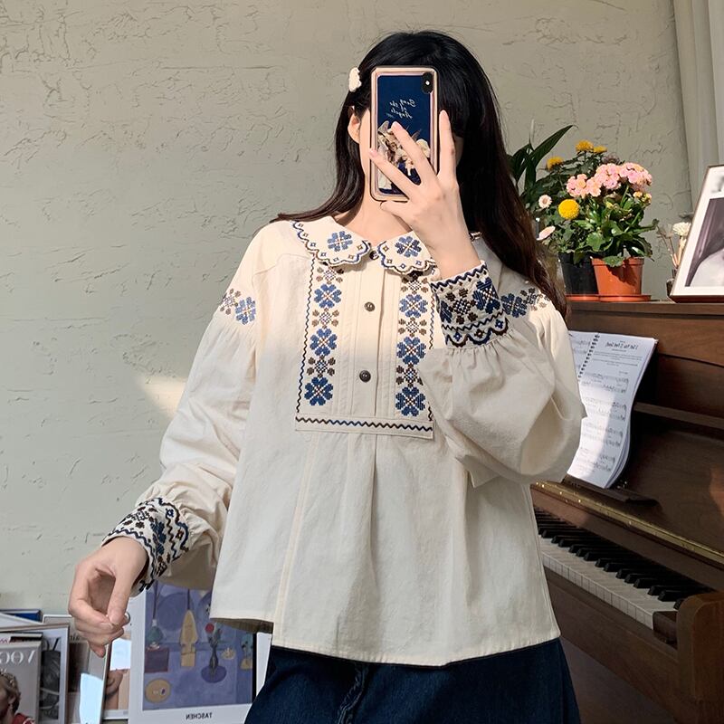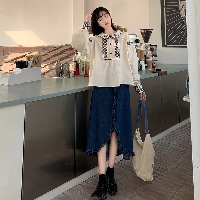 オータムスタンダードルーズカラーシャツ トップス ロング レトロ 秋物 misskkl37904597203