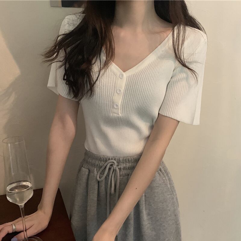 サマーソリッド カラーVネック薄手スリムセーター 夏物 ソリッドカラー misskkl54881598854