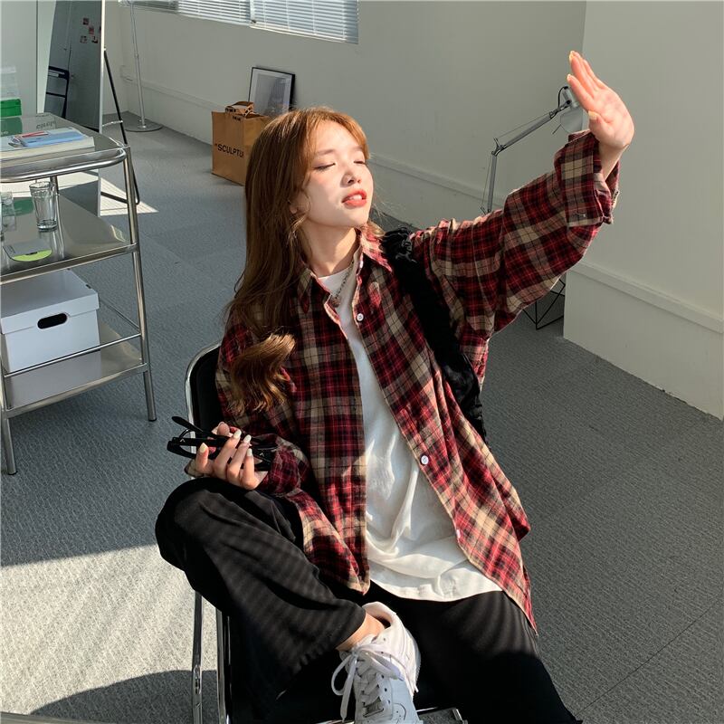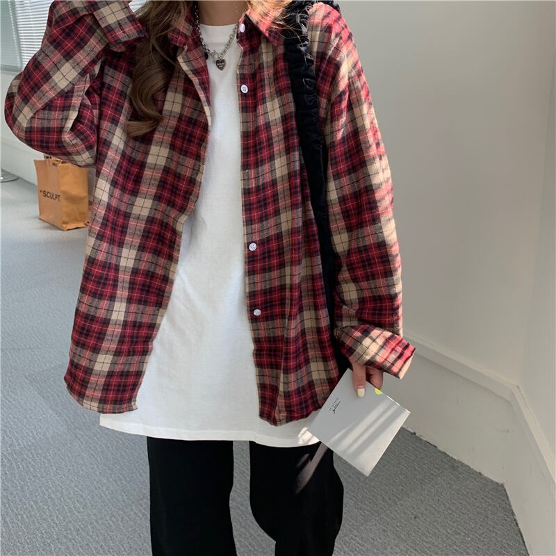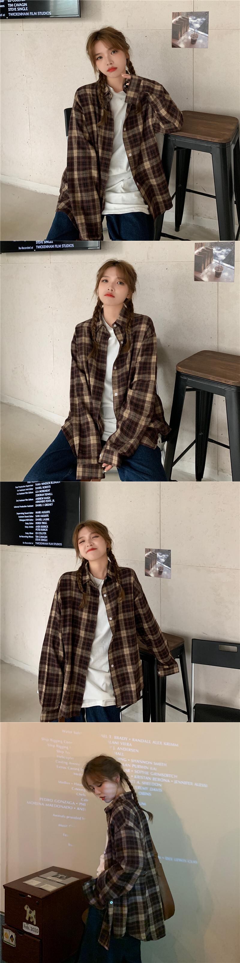 スタンダードルーズ格子柄シャツ トップス レディース ロング レトロ misskkl7301810610