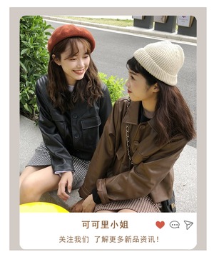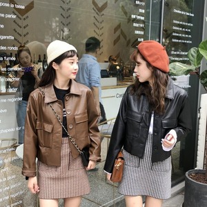 オータムルーズソリッド カラーショートジャケット レザー 秋物 ソリッドカラー misskkl21239650663