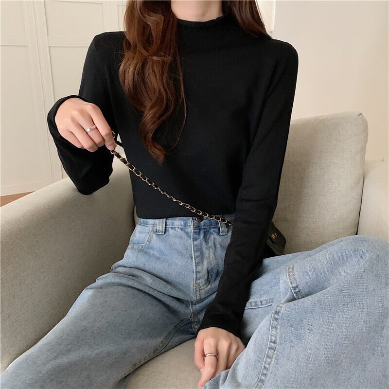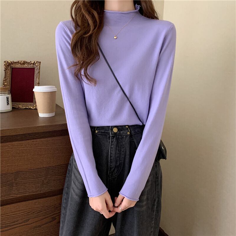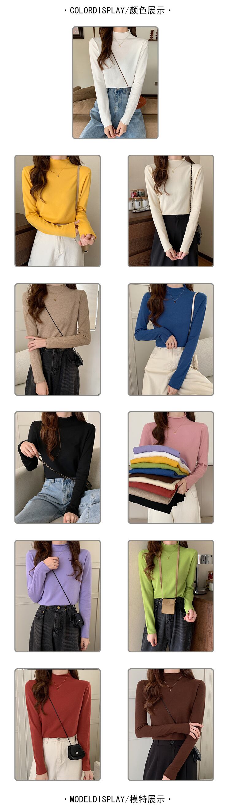 シャツ Tシャツ オータムウィンタースリム薄手ソリッド カラートップス レディース ロング 秋物 冬物 ソリッドカラー misskkl64446767921