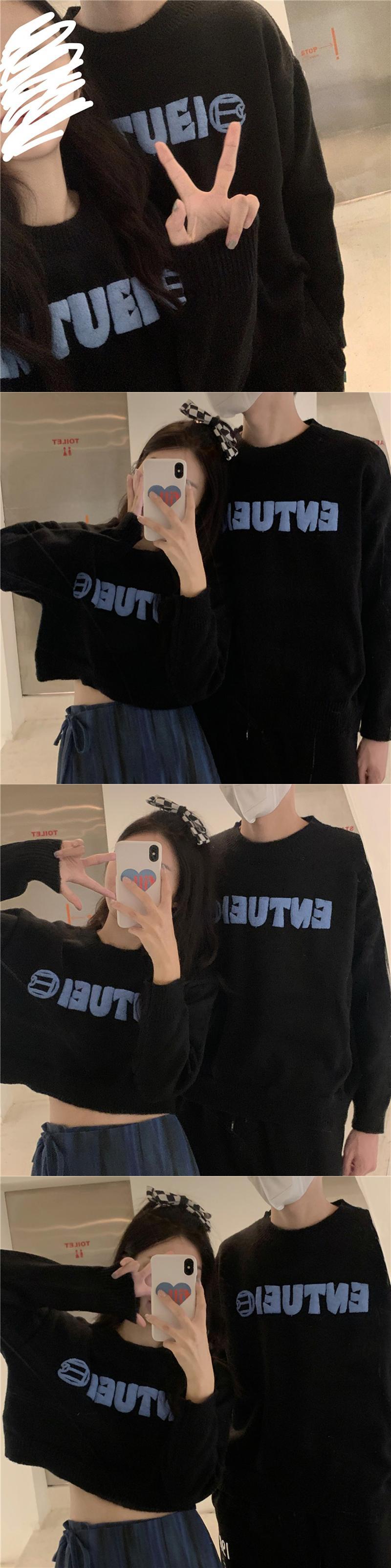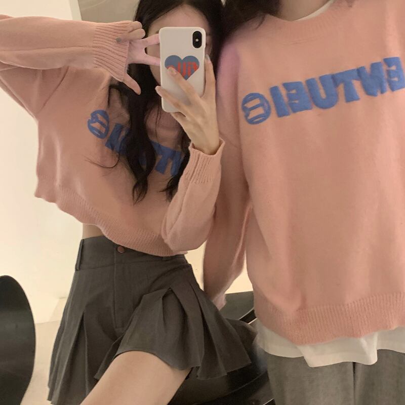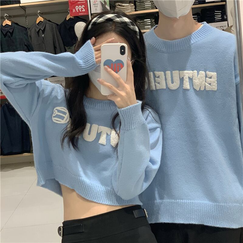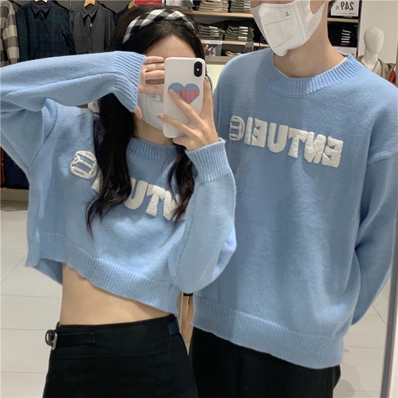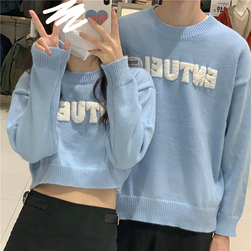 セーター ブルーショートニットルーズブラウス レディース オータム 秋物 ウィンター 冬物 misskkl39677935655