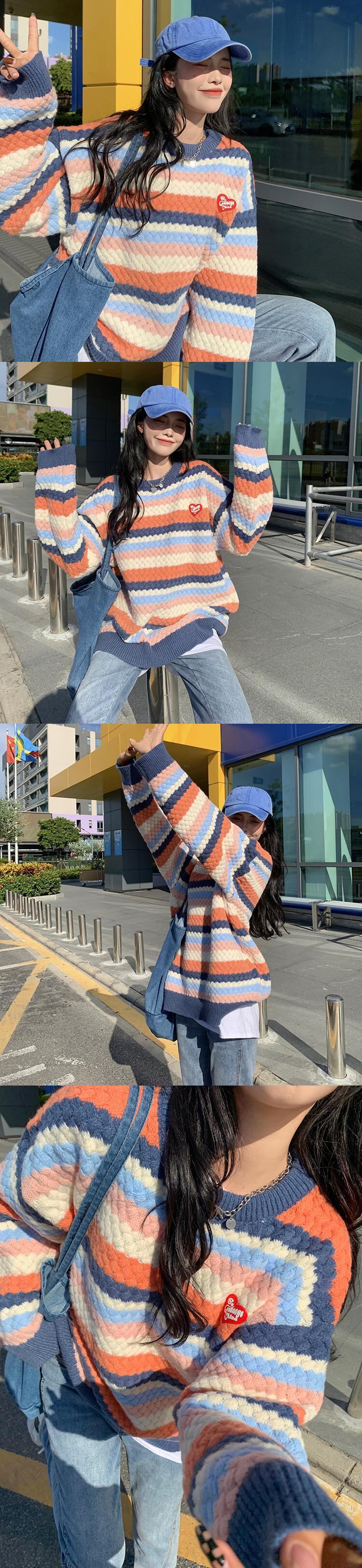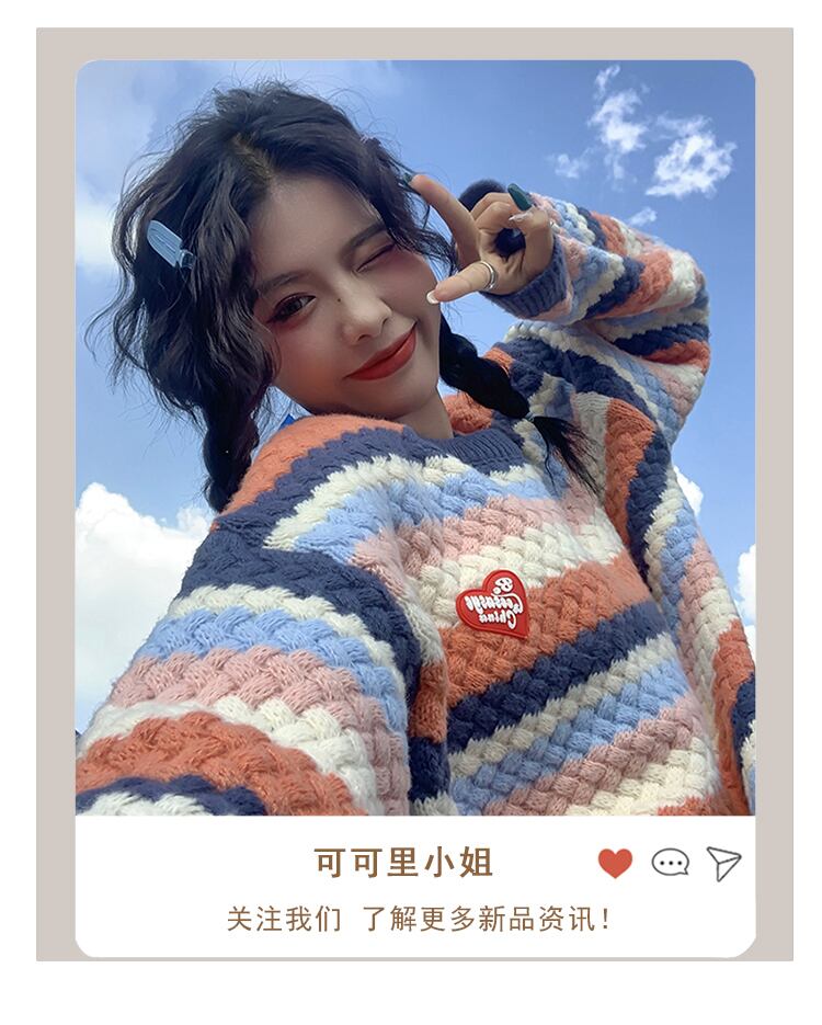 セーター カラーストライプオータムルーズ ロング 秋物 misskkl54842853142