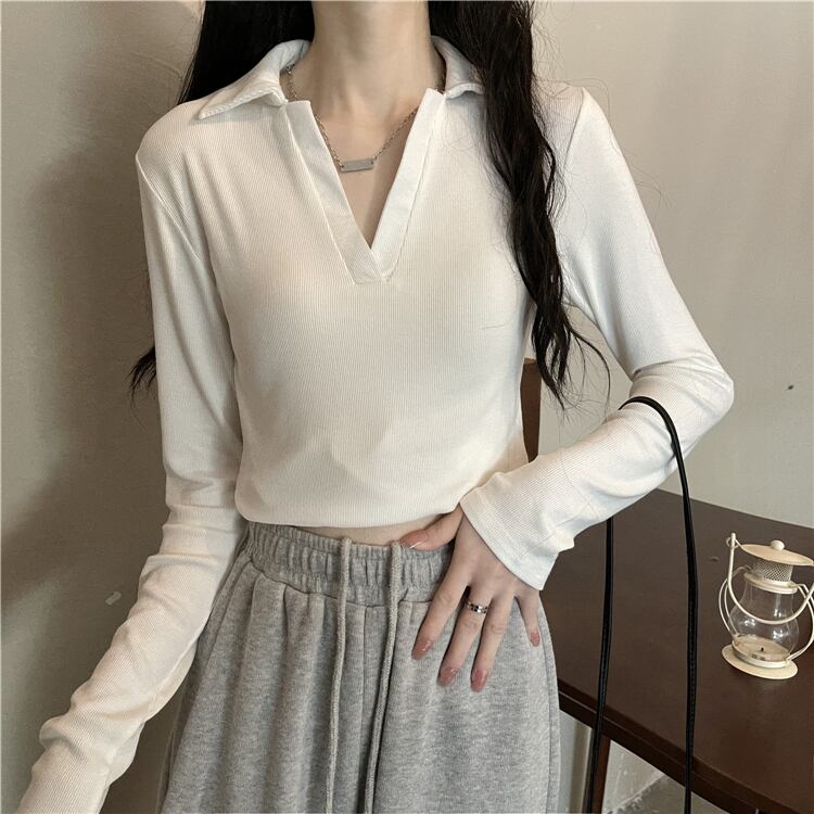 カラー長袖スリーブTシャツ オータム ロング 秋物 misskkl24886107213