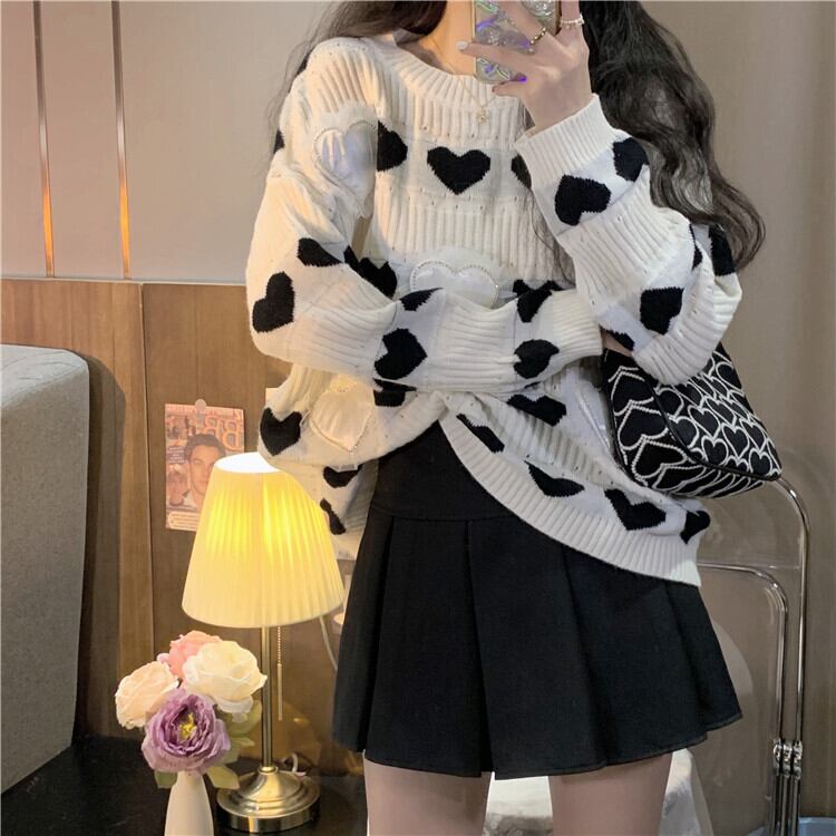 ラウンドネックセーター オータムウィンタースタイルルーズニットトップス レディース ロング 大人ガーリー スウィート キュート カジュアル 秋物 冬物 Oネック misskkl82675802142