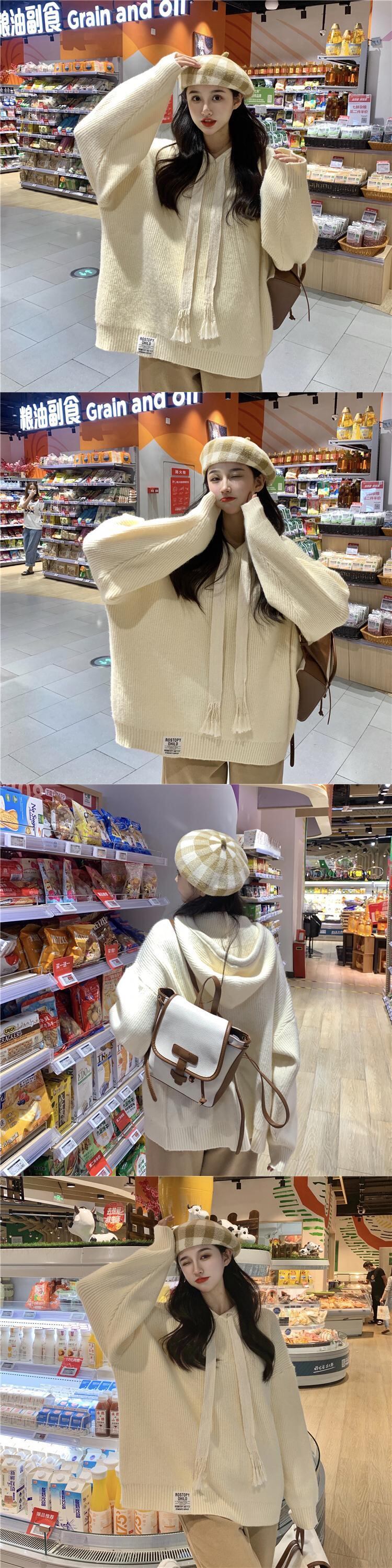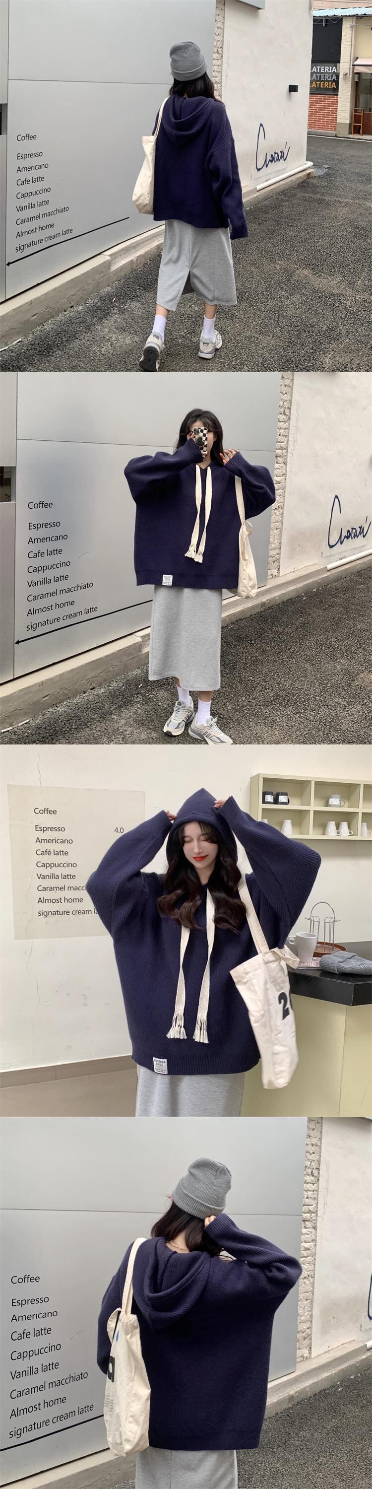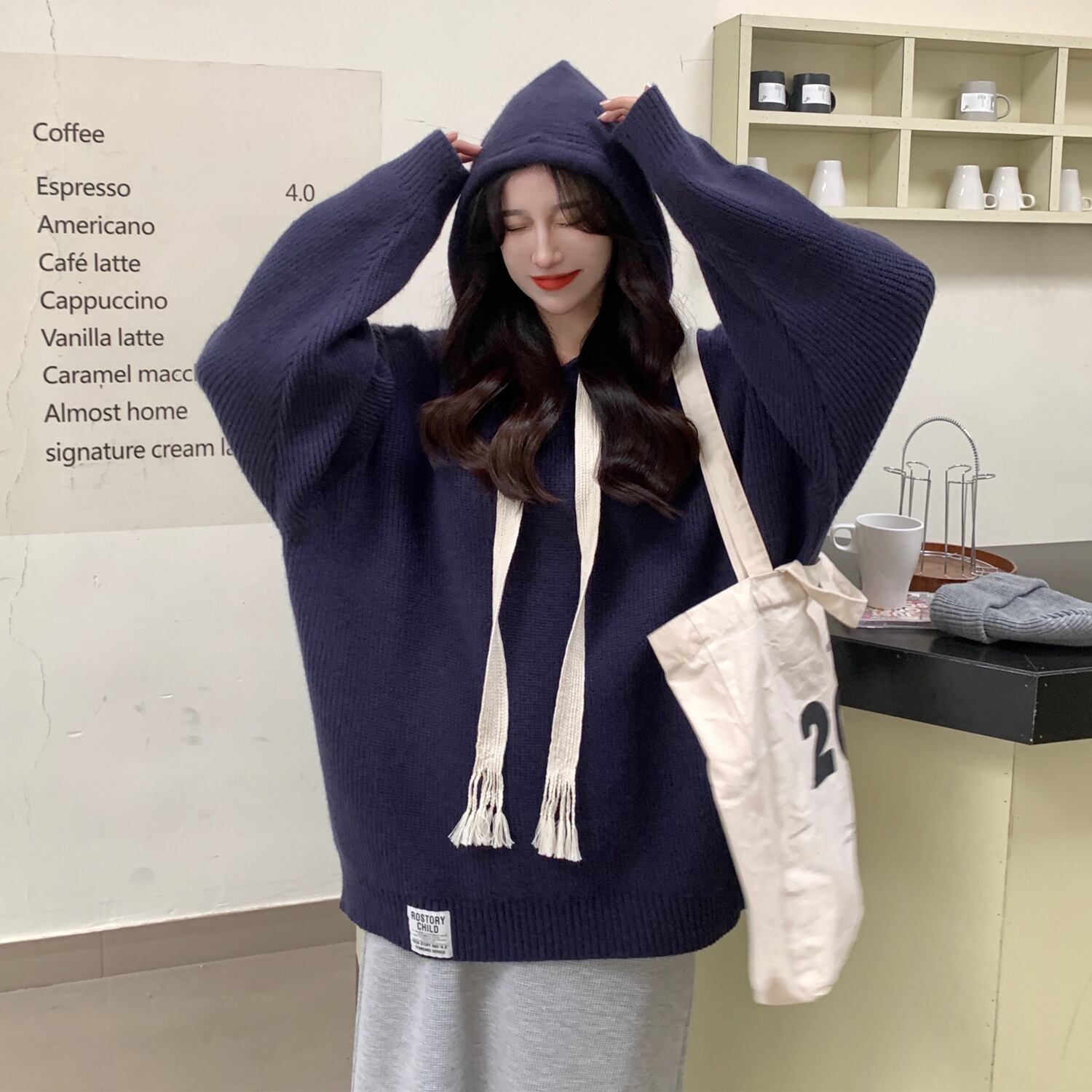 スタイルフードセーター レディースギャザールーズニットジャケット トップス ロング オータム 秋物 ウィンター 冬物 misskkl94230426774