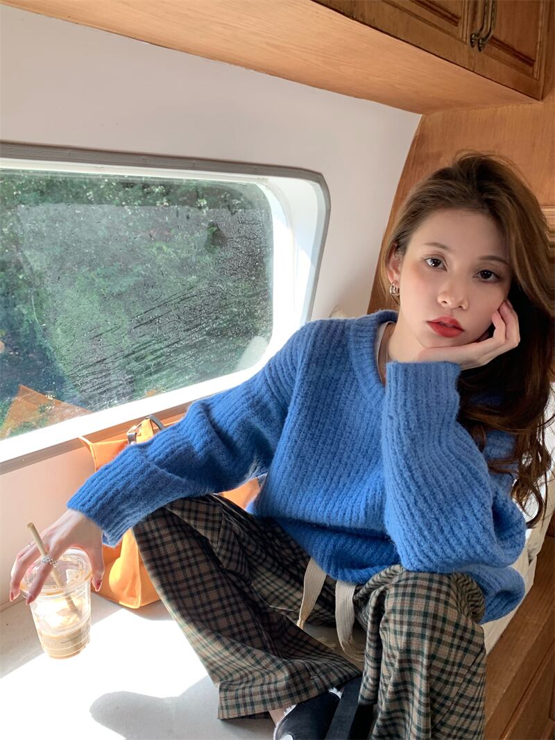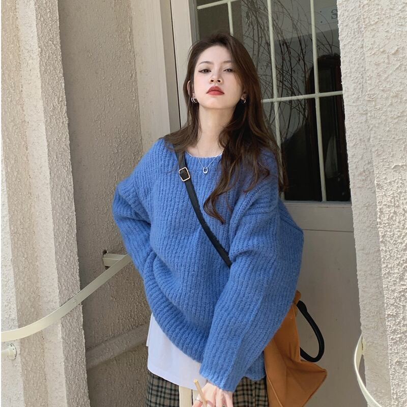 ブルーセーター ウィンターラウンドネックプルオーバー ニットコート ジャケット レディース 冬物 Oネック misskkl13570165398