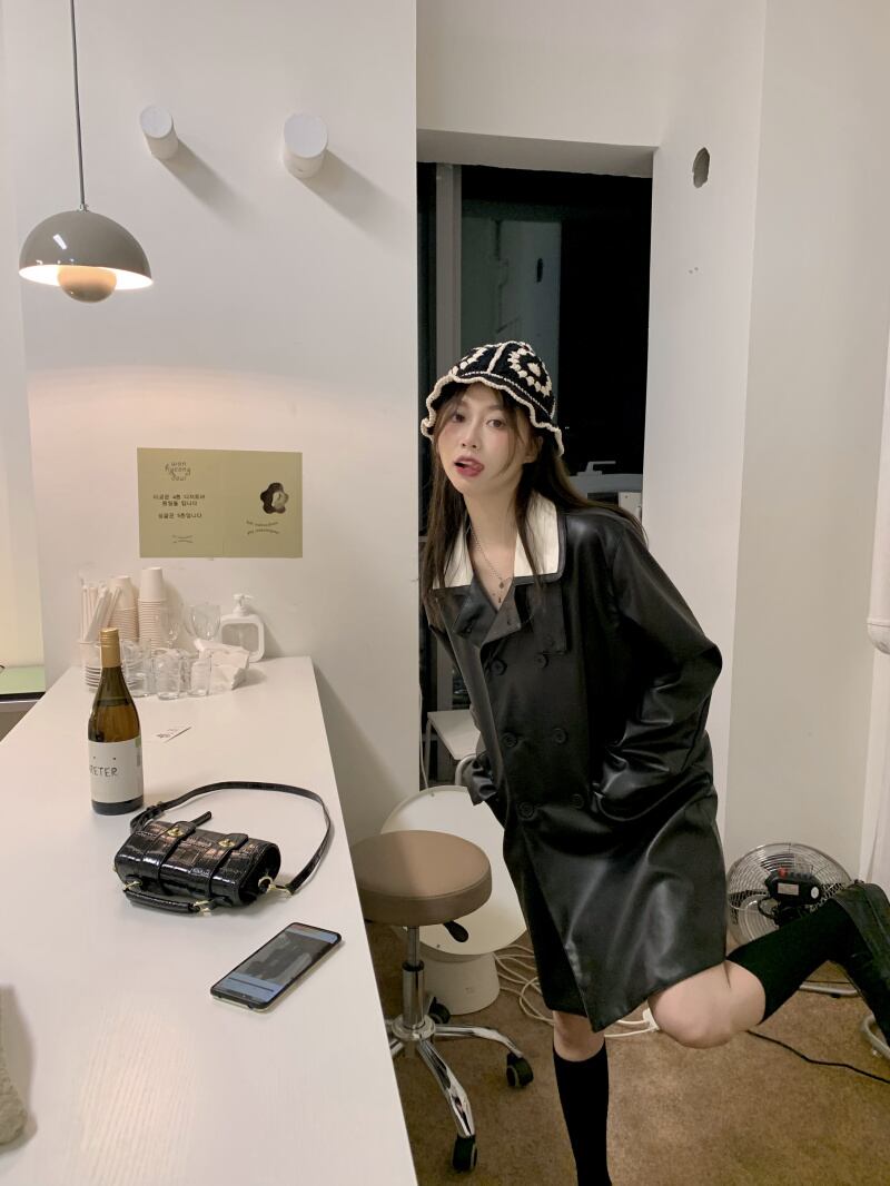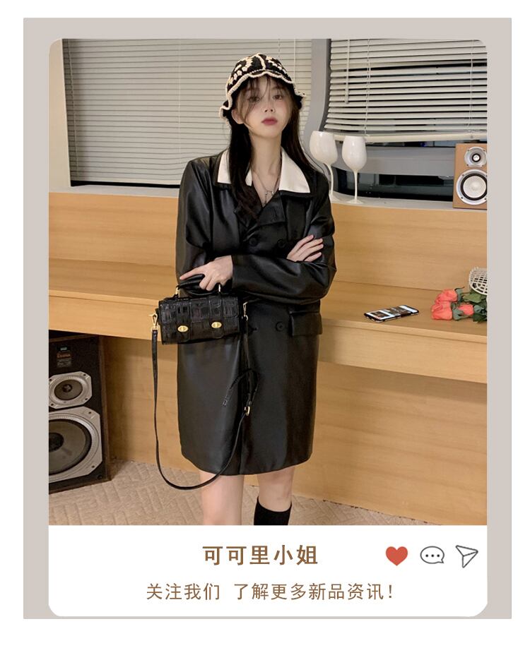 レザージャケット オータムウィンターカラースタンダードダブルブレストコート ロング レトロ 秋物 冬物 misskkl37730362992